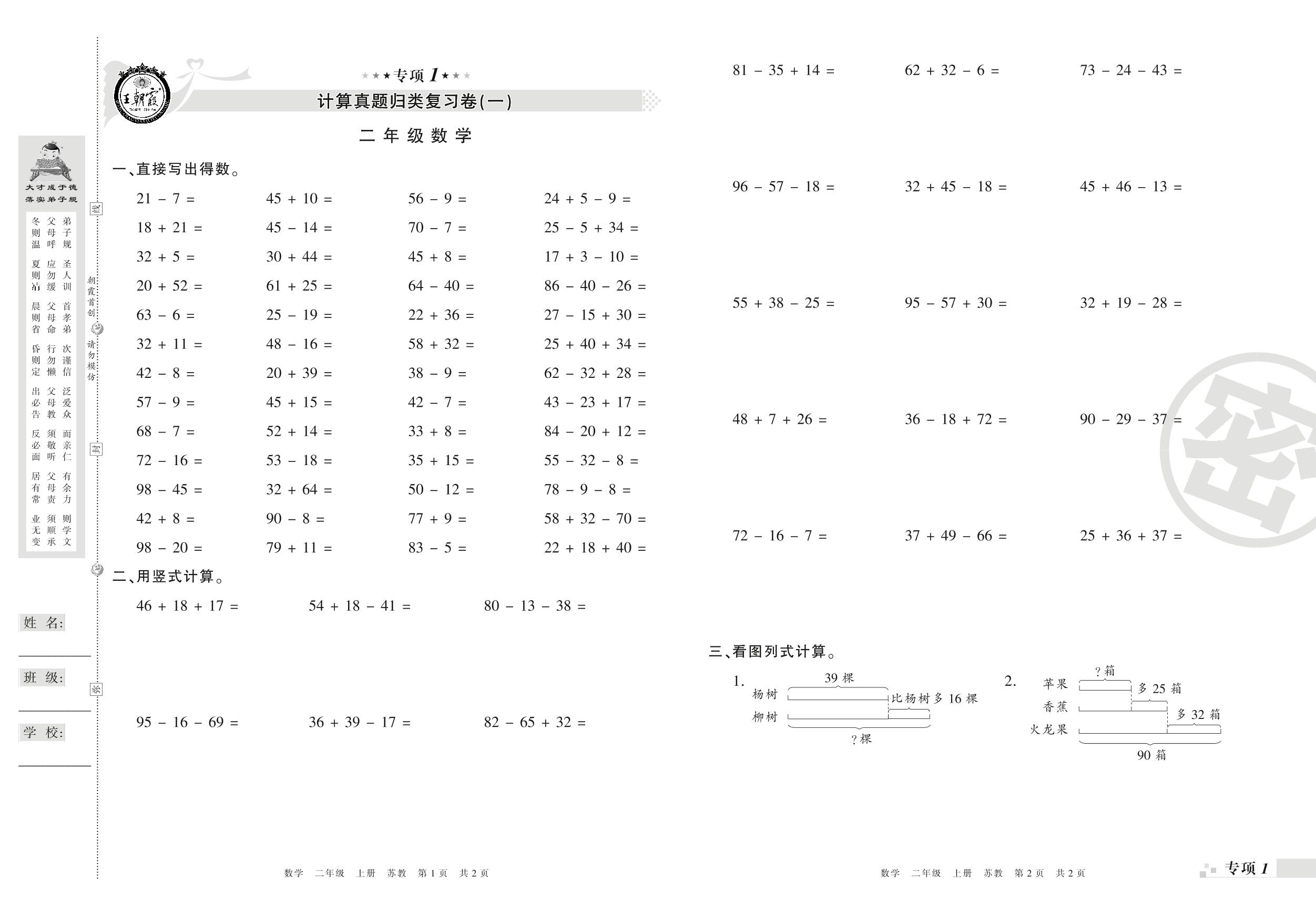 王朝霞期末专项卷——计算真题归类复习二年级上册数学(苏教版)_R21080393442【0】