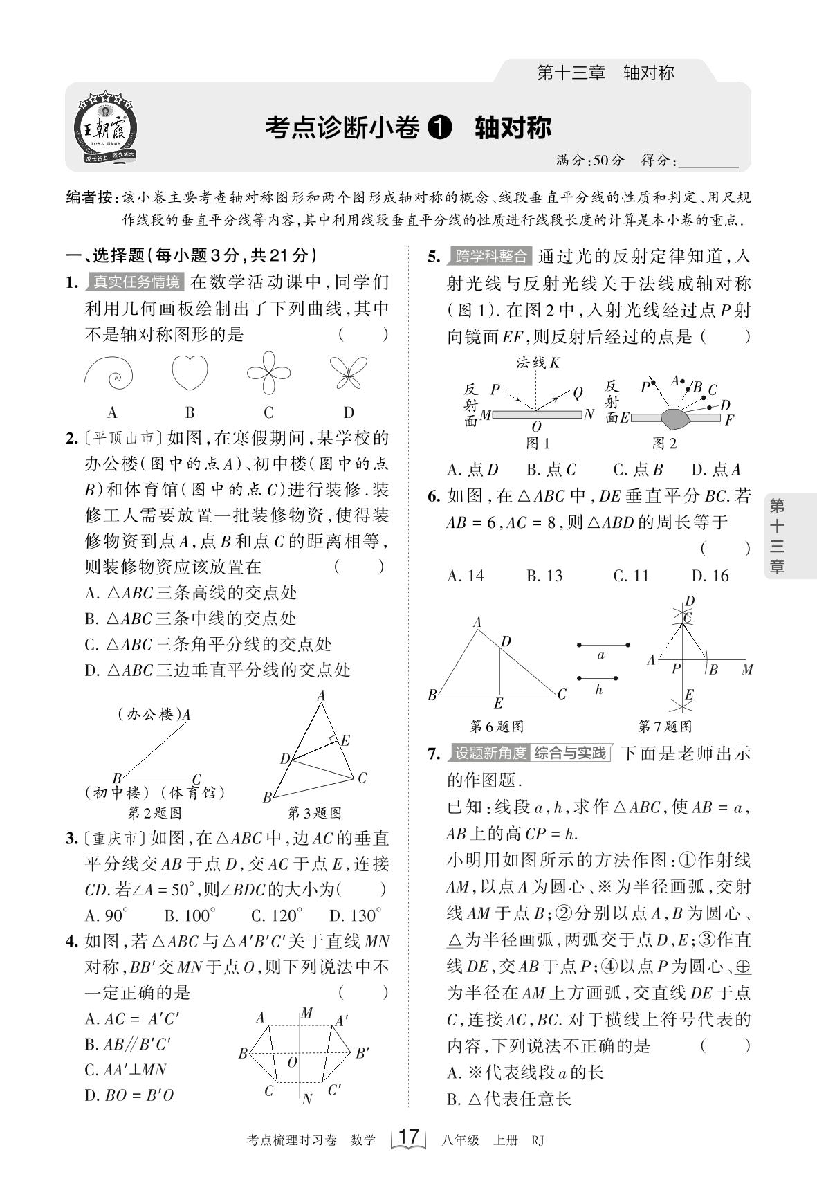 2023上册八年级数学人教版 考点诊断小卷1 轴对称