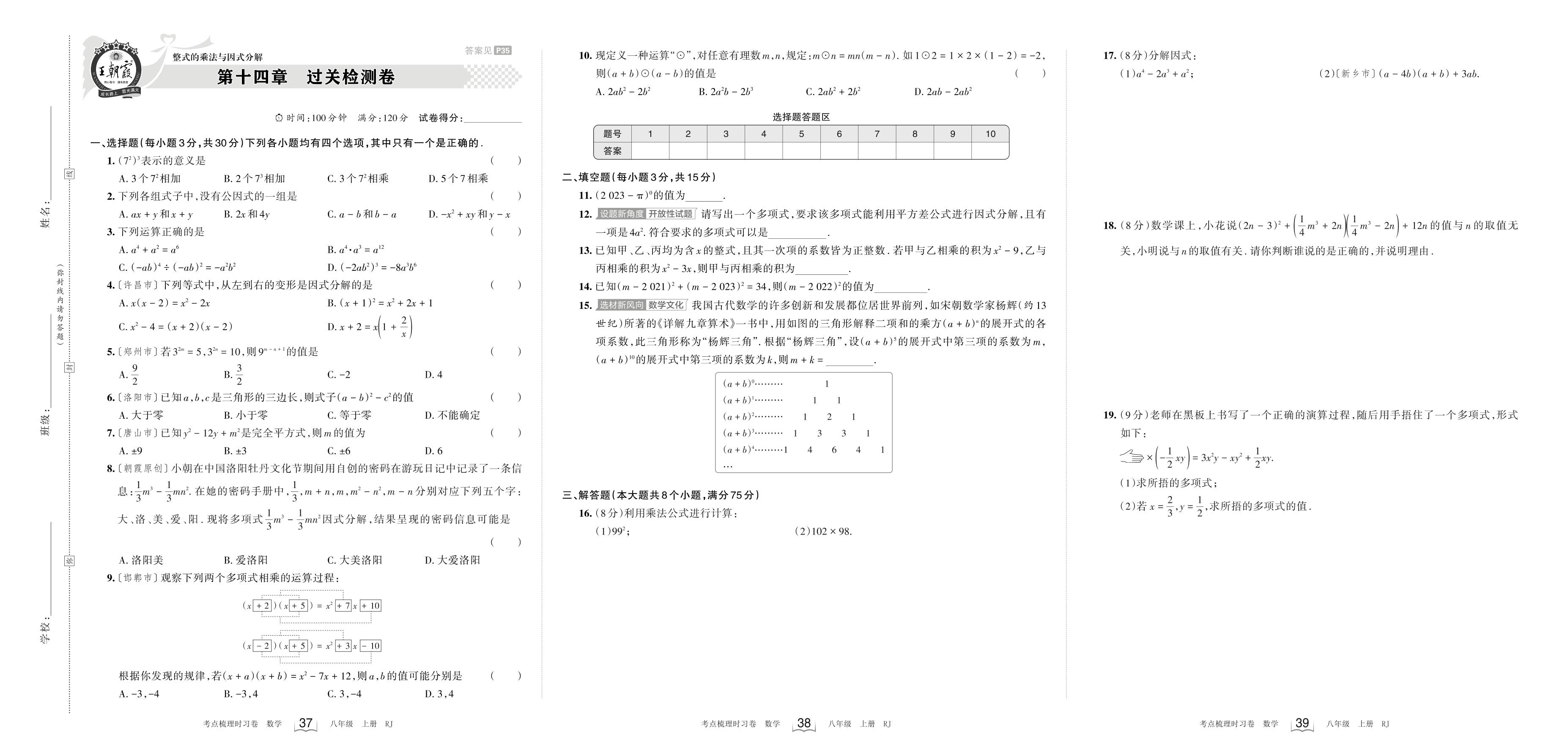 2023上册八年级数学人教版 第十四章 过关检测卷