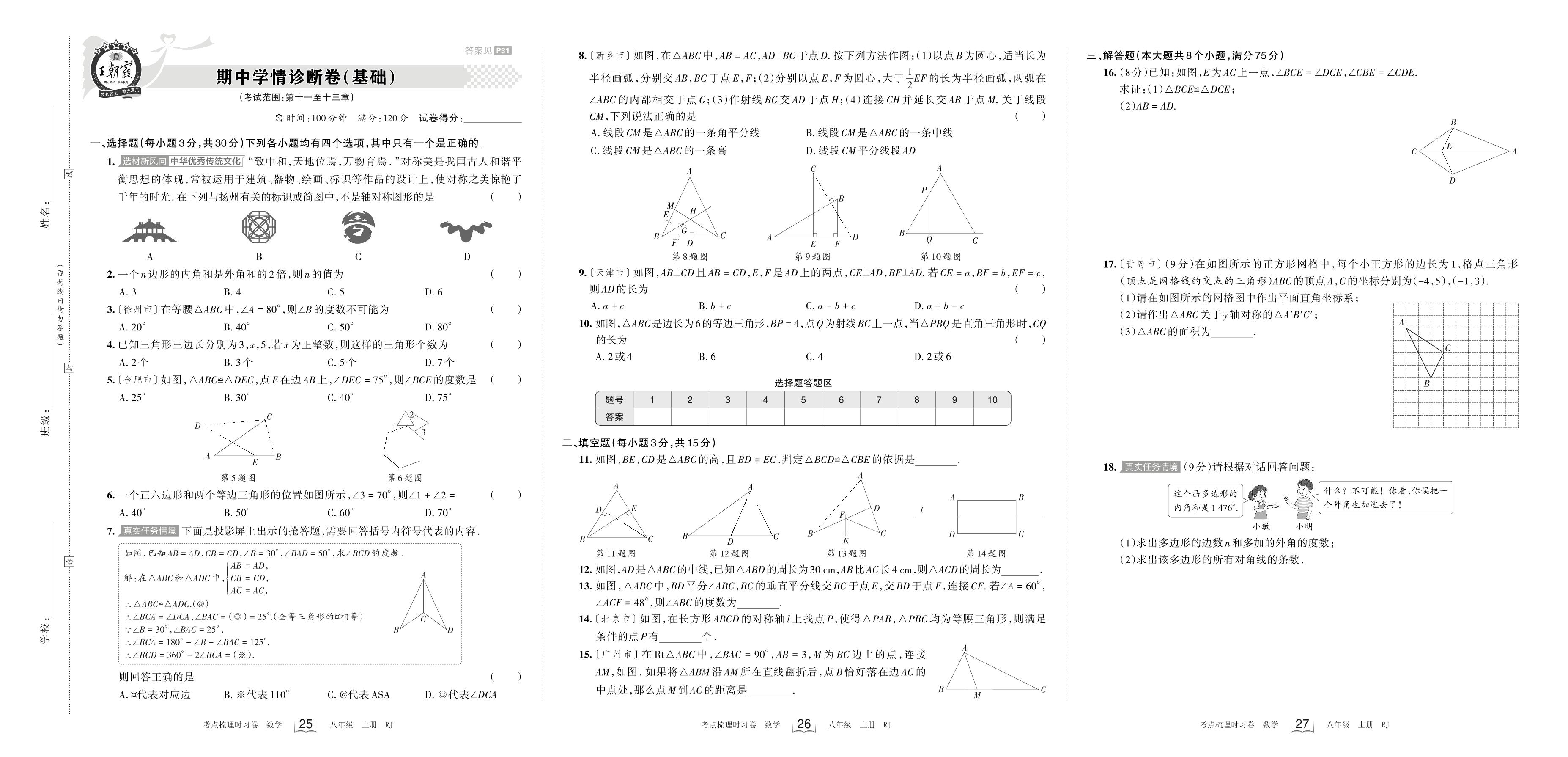 2023上册八年级数学人教版 期中学情诊断卷(基础)