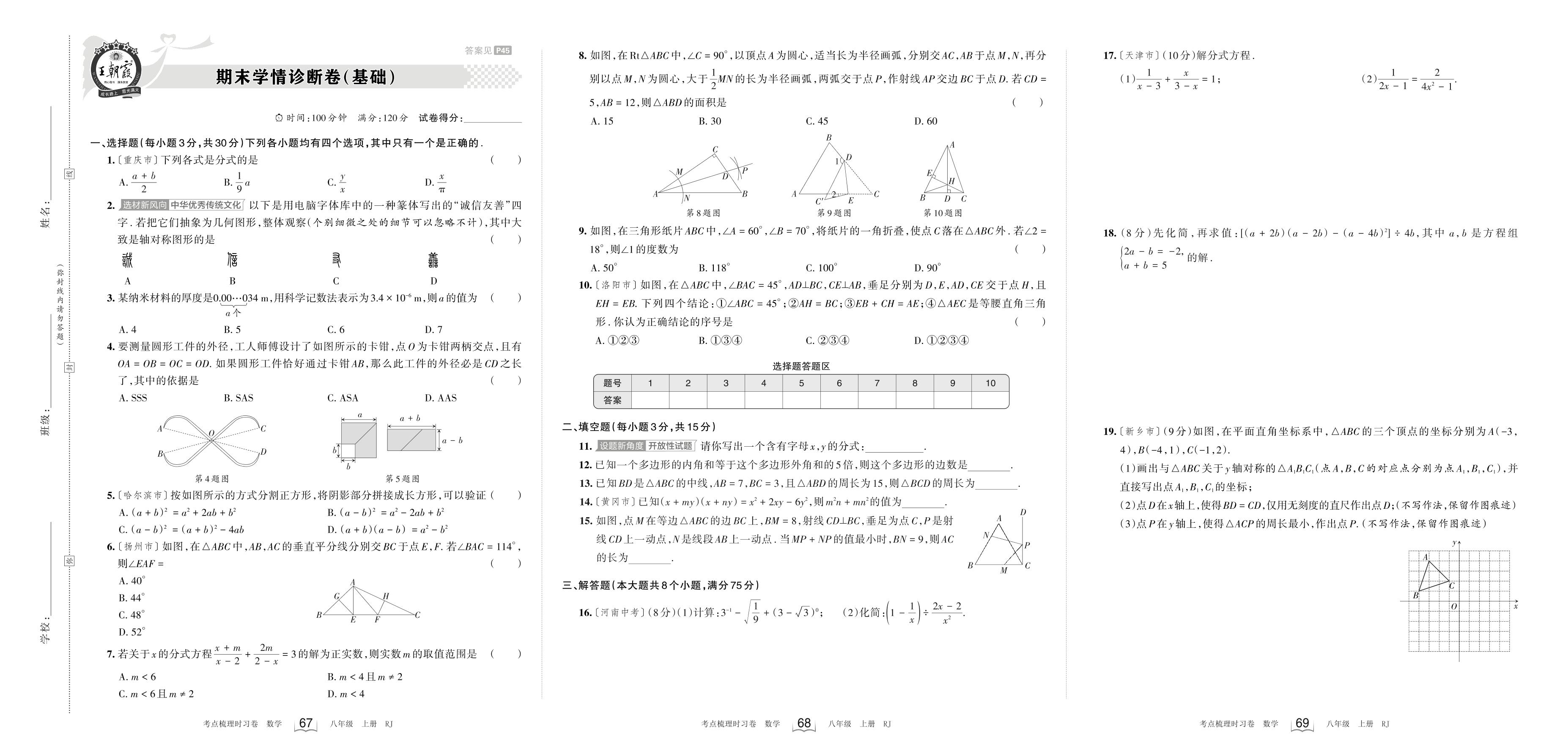 八年级数学人教版上册期末卷