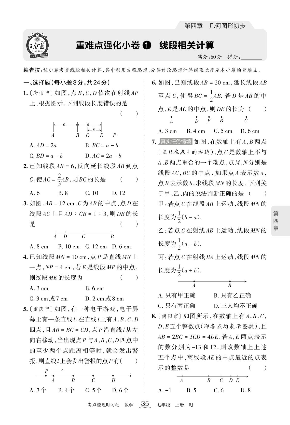 2023上册七年级数学人教版 重难点强化小卷1 线段相关计算