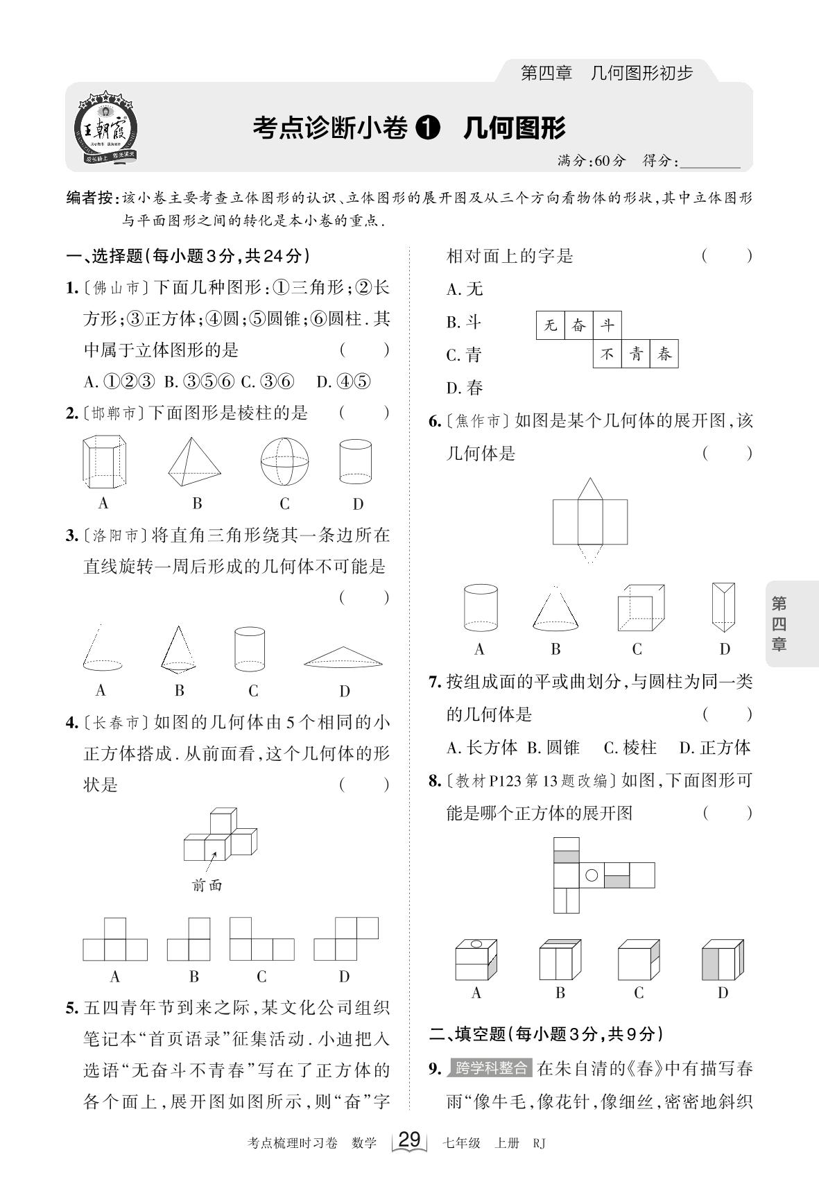 2023上册七年级数学人教版 考点诊断小卷1 几何图形