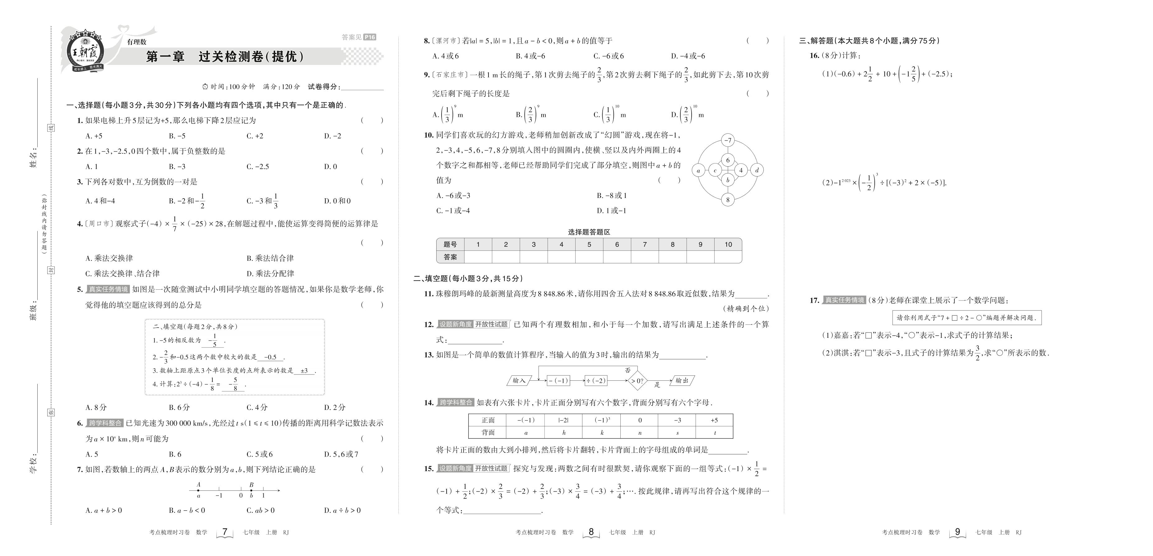 2023上册七年级数学人教版 第一章 过关检测卷(提优)