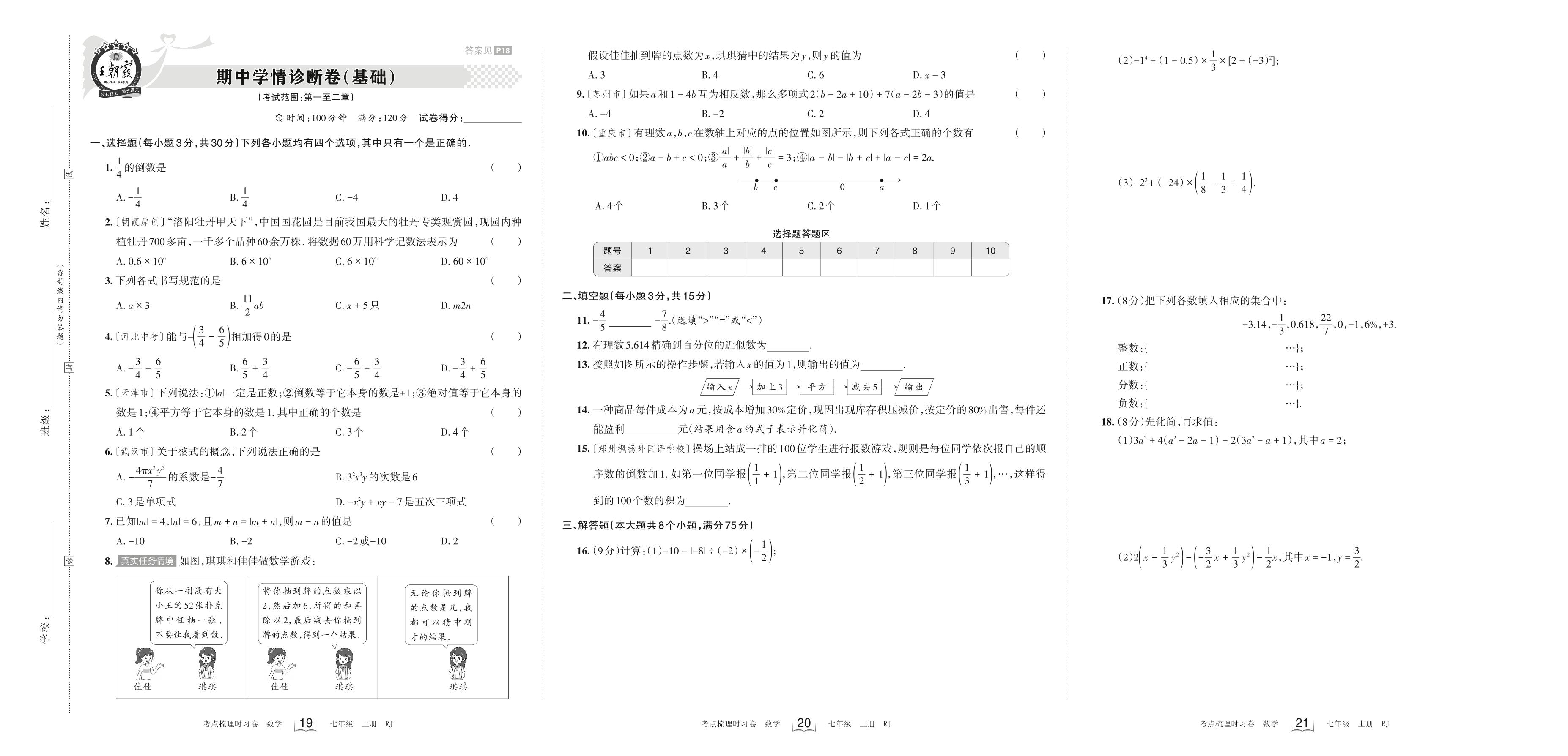 2023上册七年级数学人教版 期中学情诊断卷(基础)