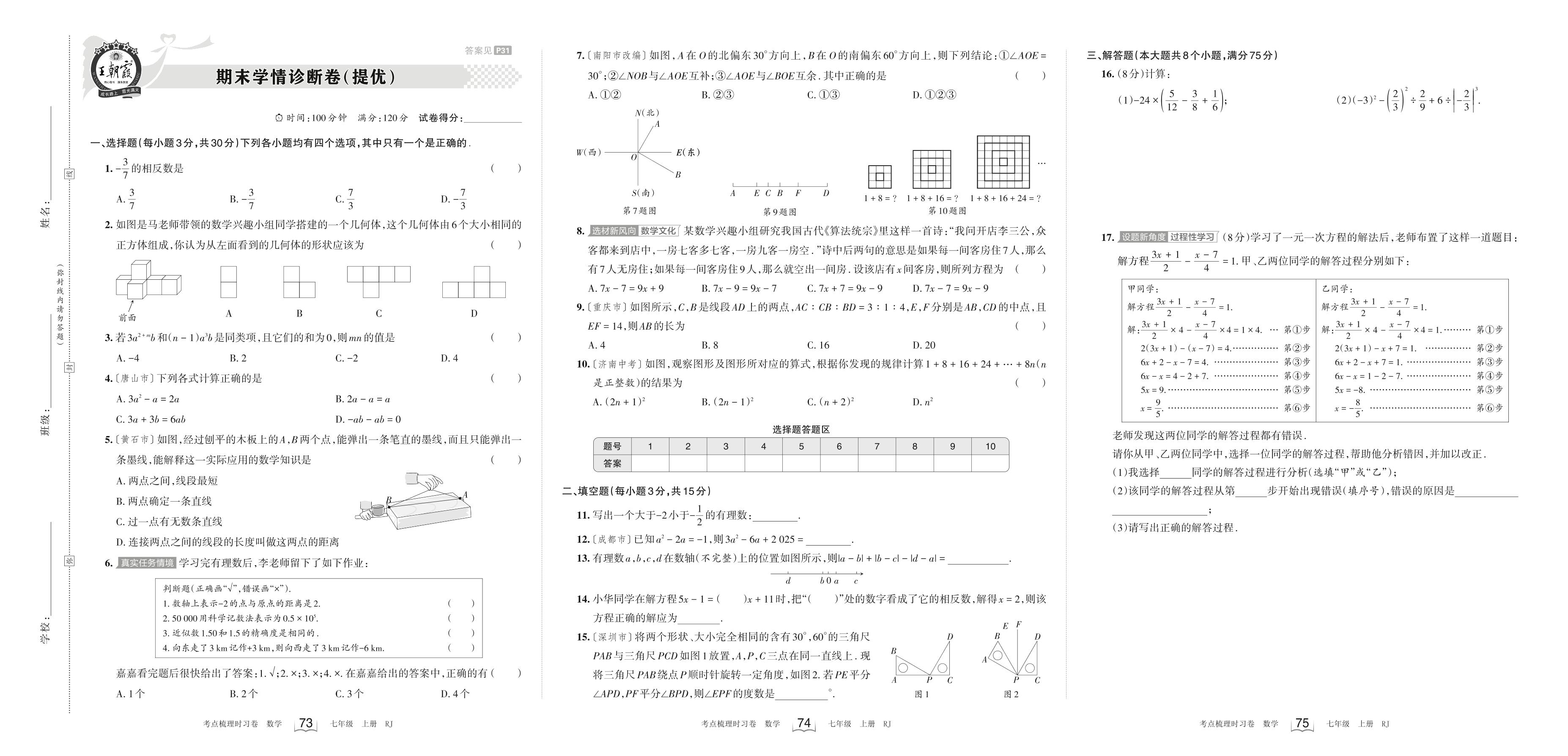 2023上册七年级数学人教版 期末学情诊断卷(提优)