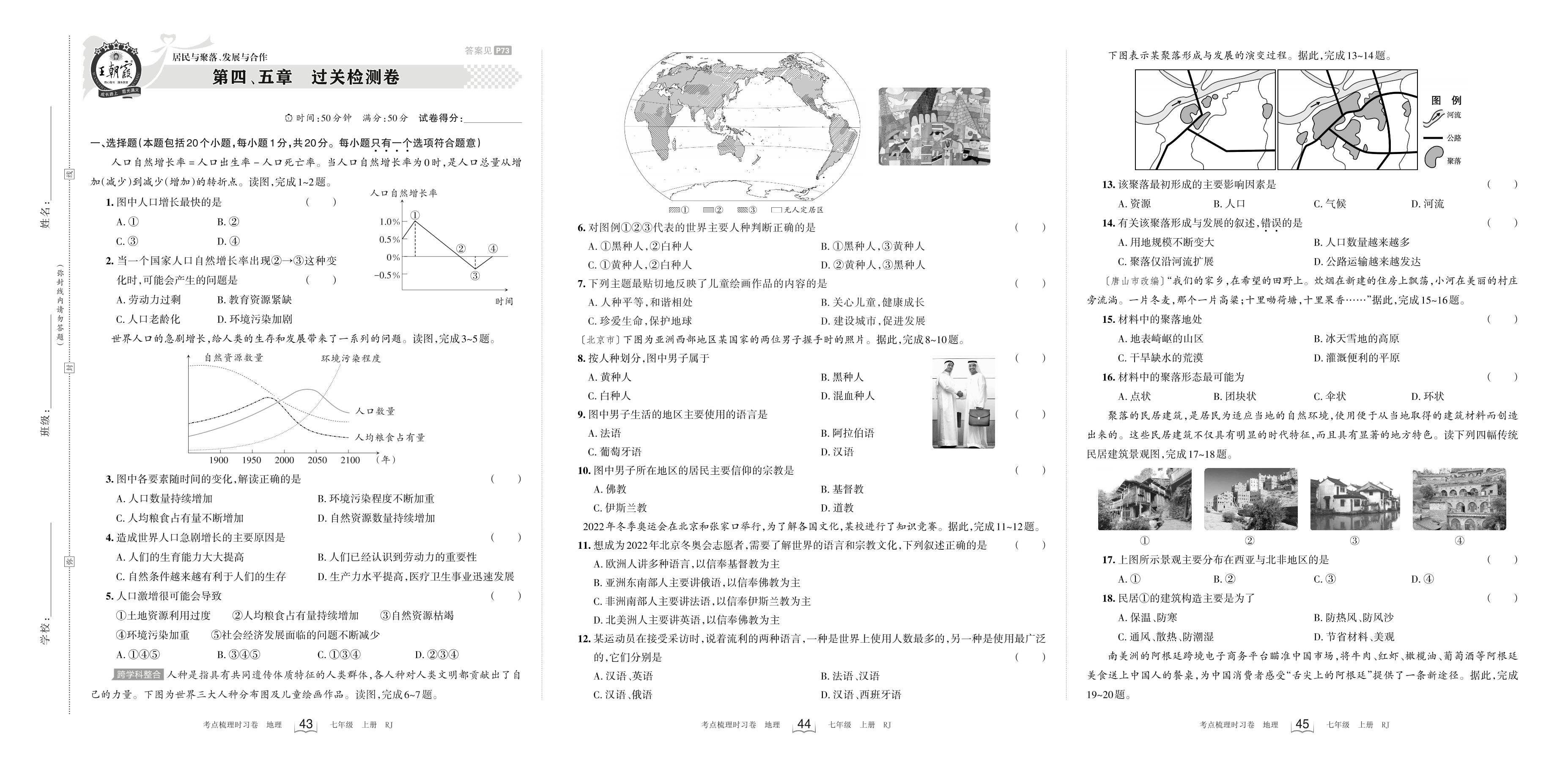 2023上册七年级地理人教版 第四、五章 过关检测卷