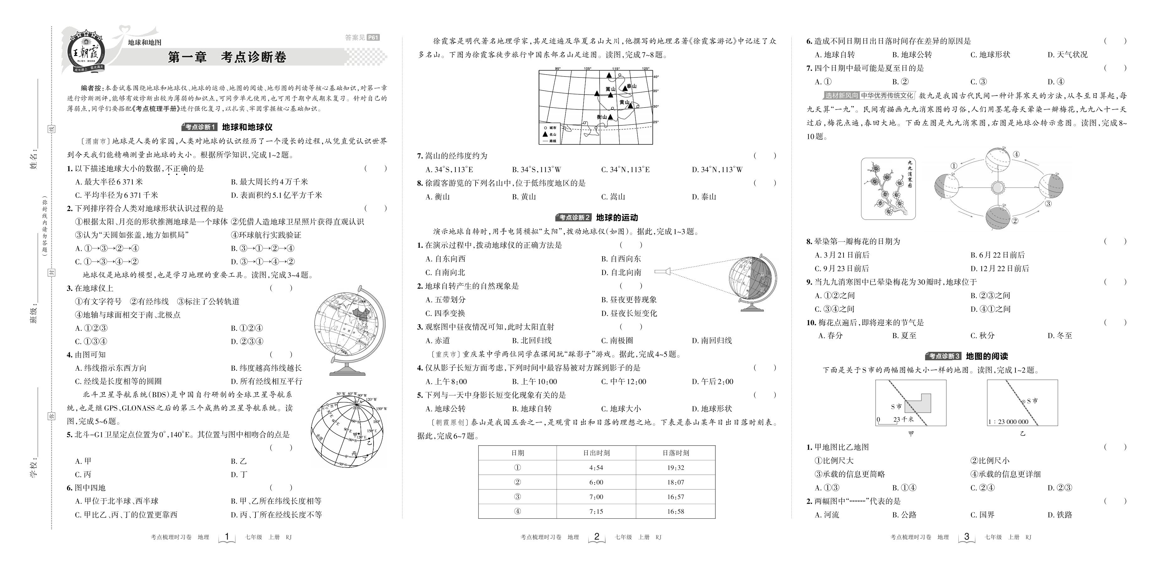 2023上册七年级地理人教版 第一章 考点诊断卷