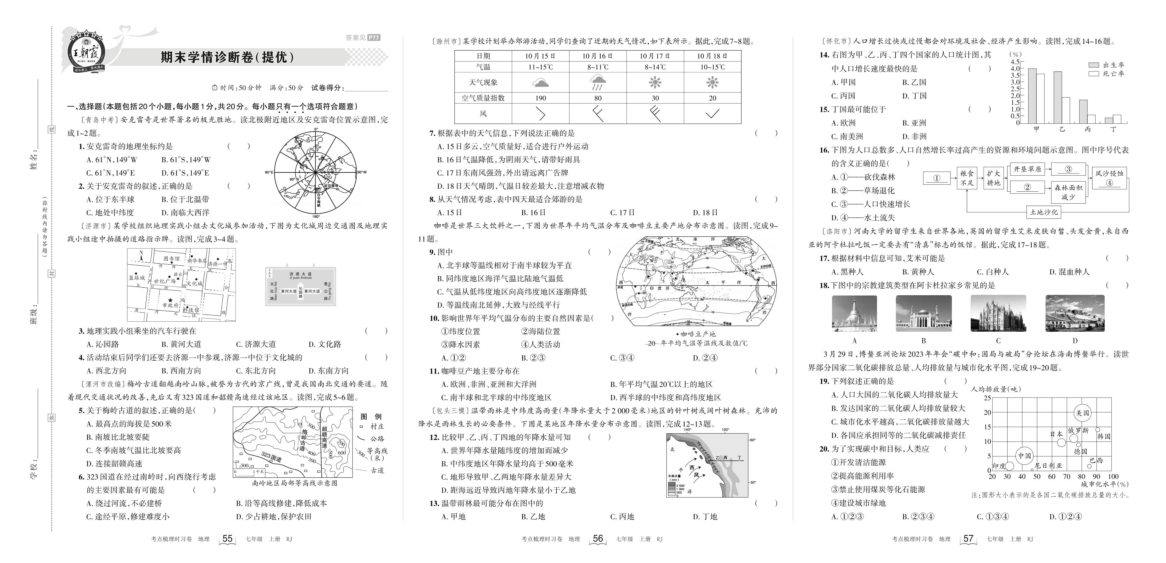 2023上册七年级地理人教版 期末学情诊断卷(提优)
