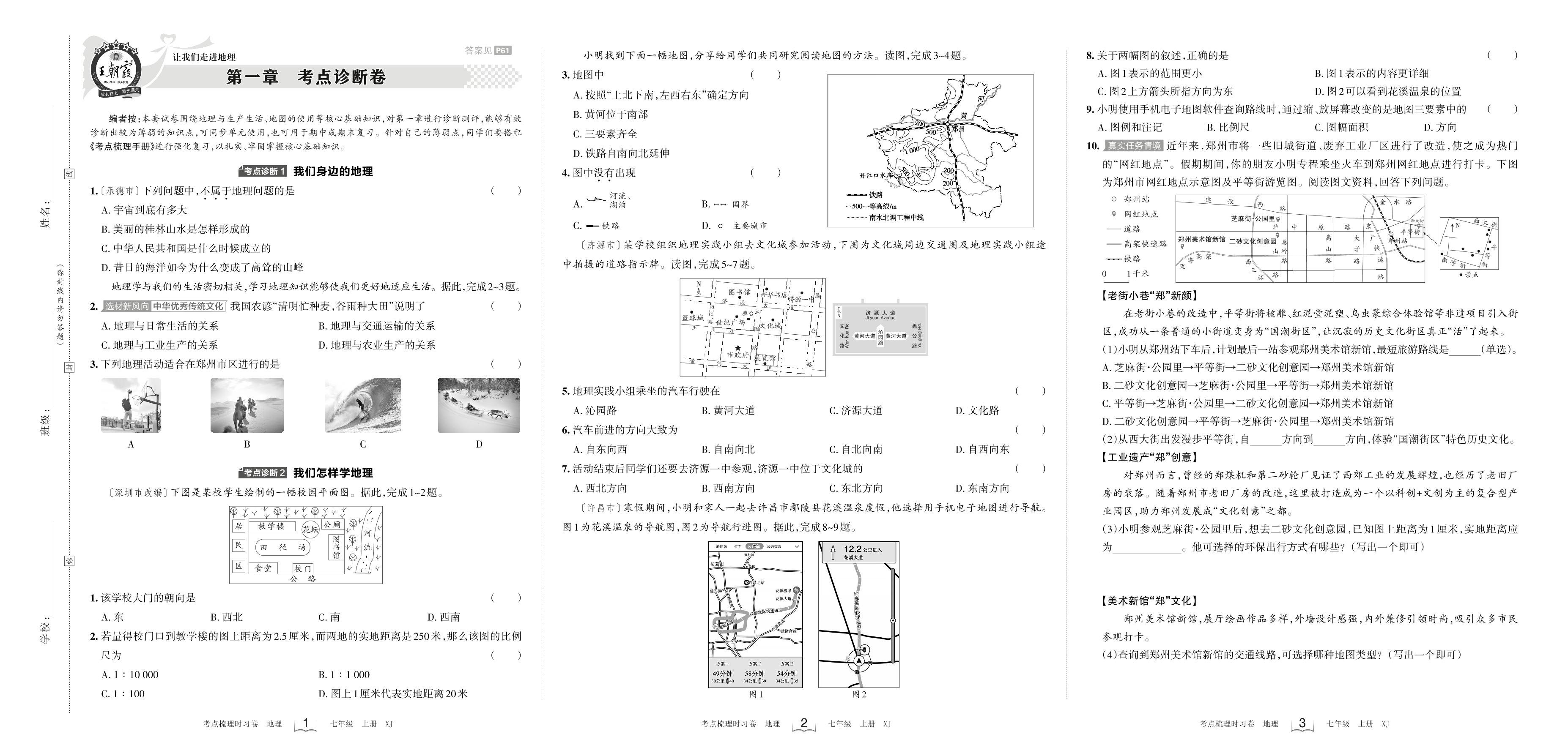 2023上册七年级地理湘教版 第一章 考点诊断卷