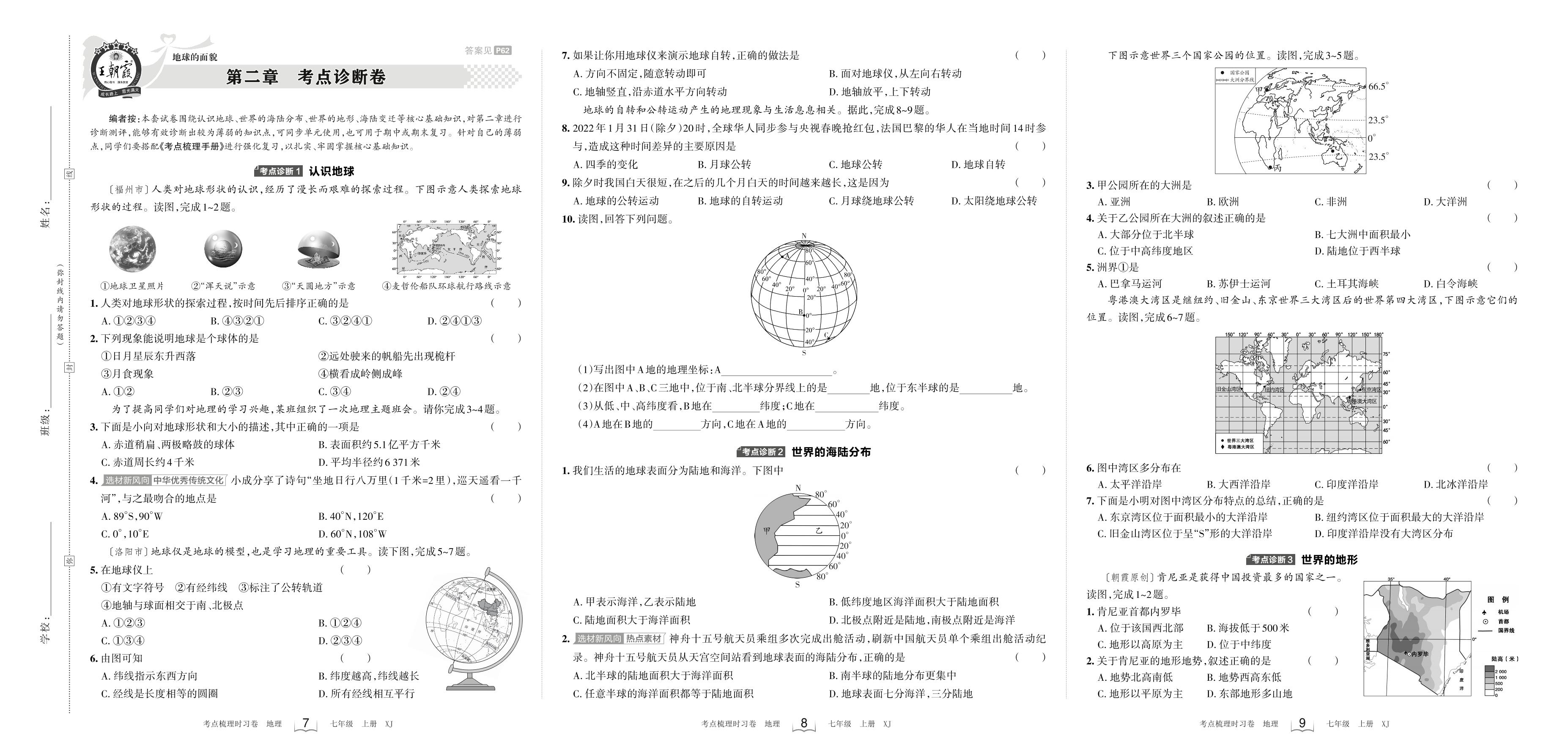 2023上册七年级地理湘教版 第二章 考点诊断卷