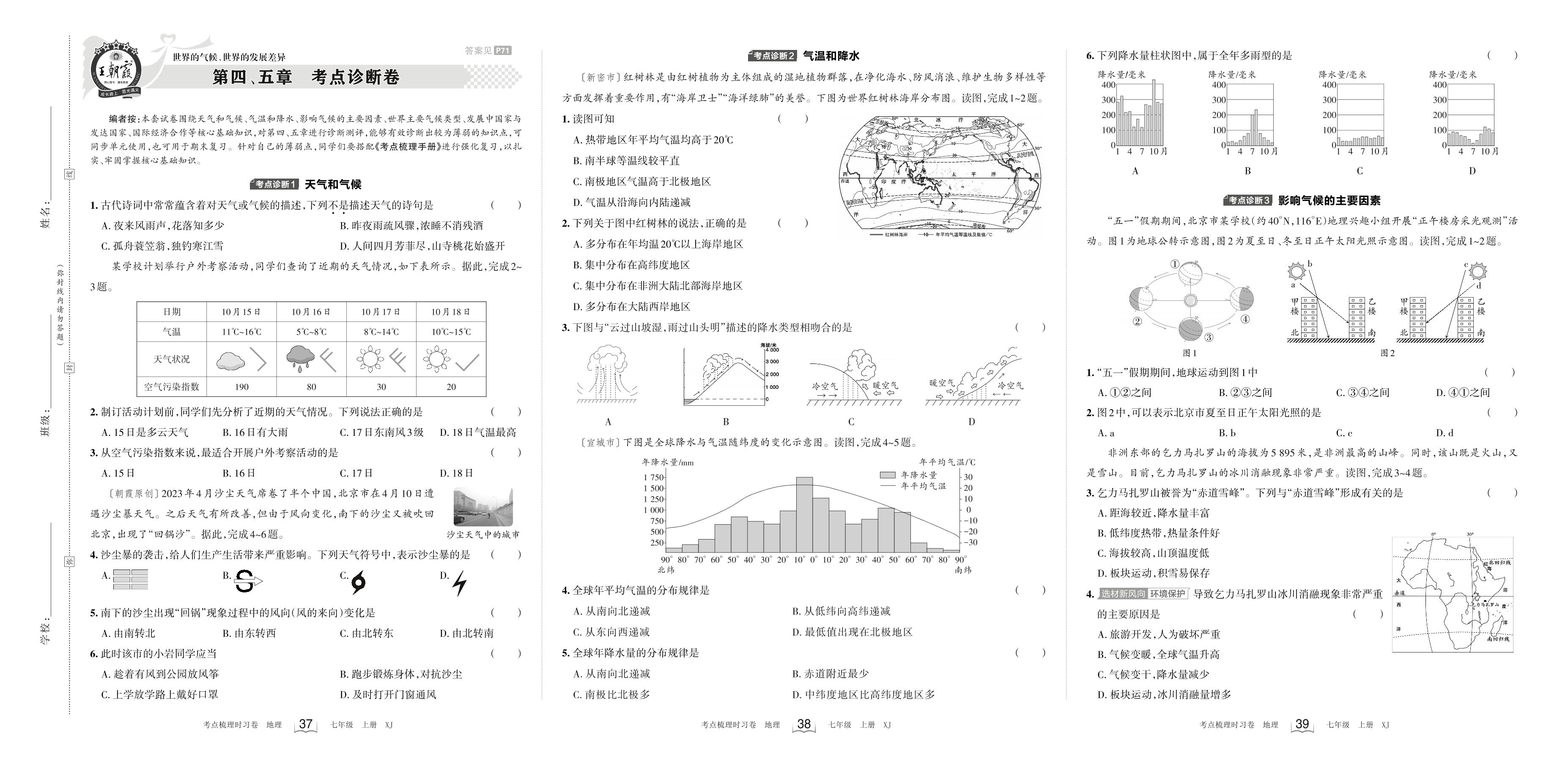 2023上册七年级地理湘教版 第四、五章 考点诊断卷