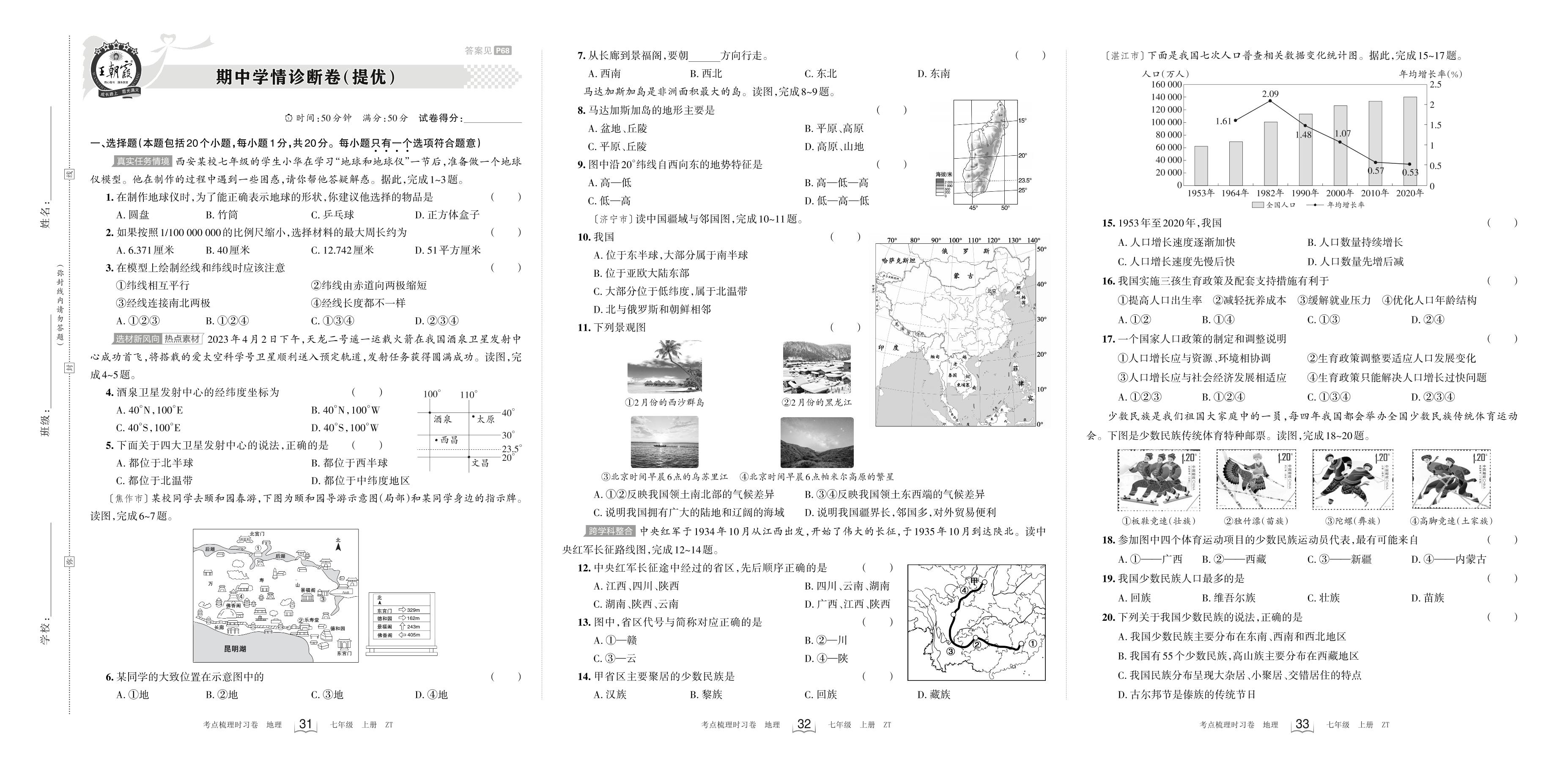 2023上册七年级地理中图版 期中学情诊断卷(提优)