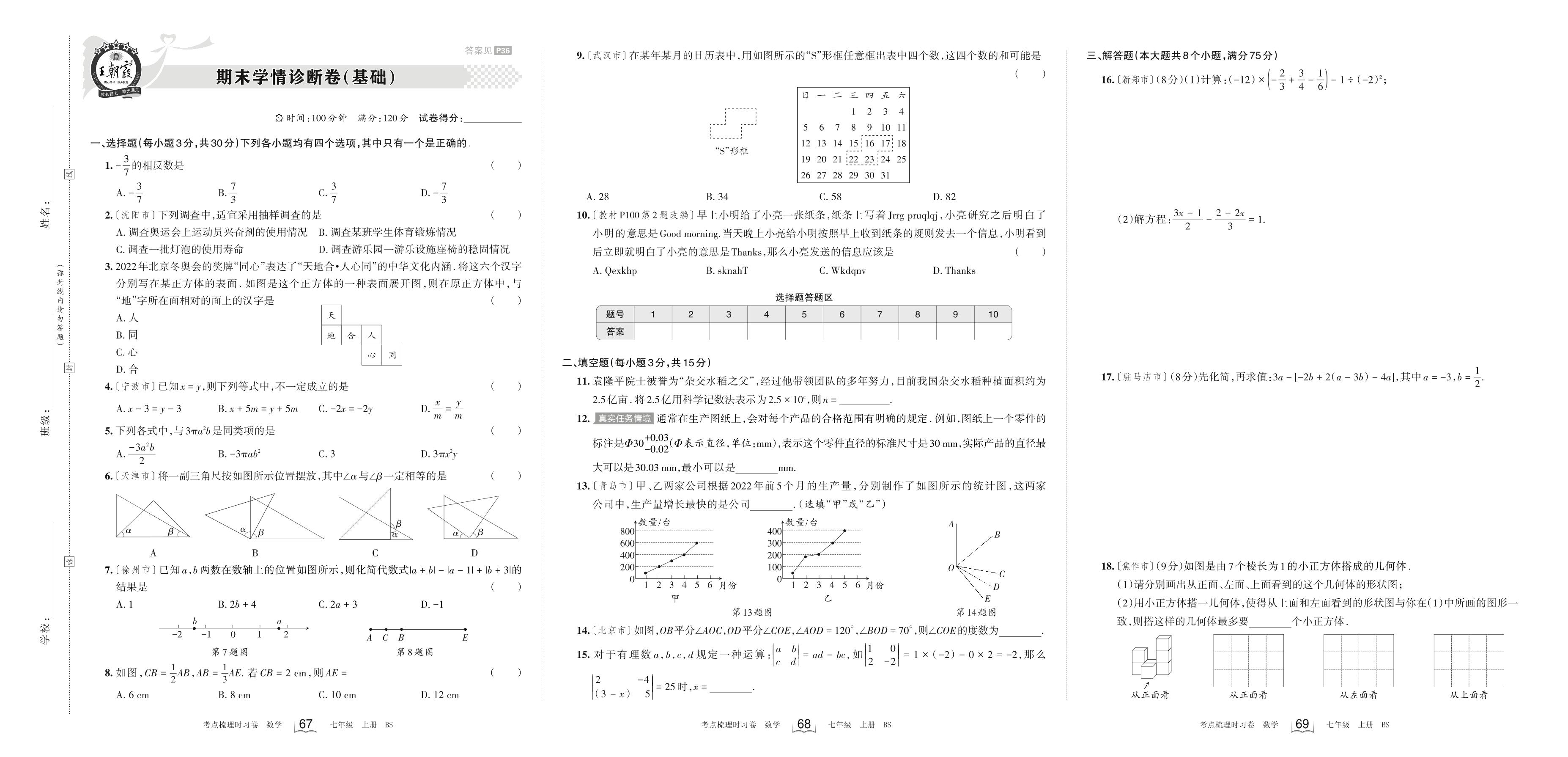 2023上册七年级数学北师版 期末学情诊断卷(基础)