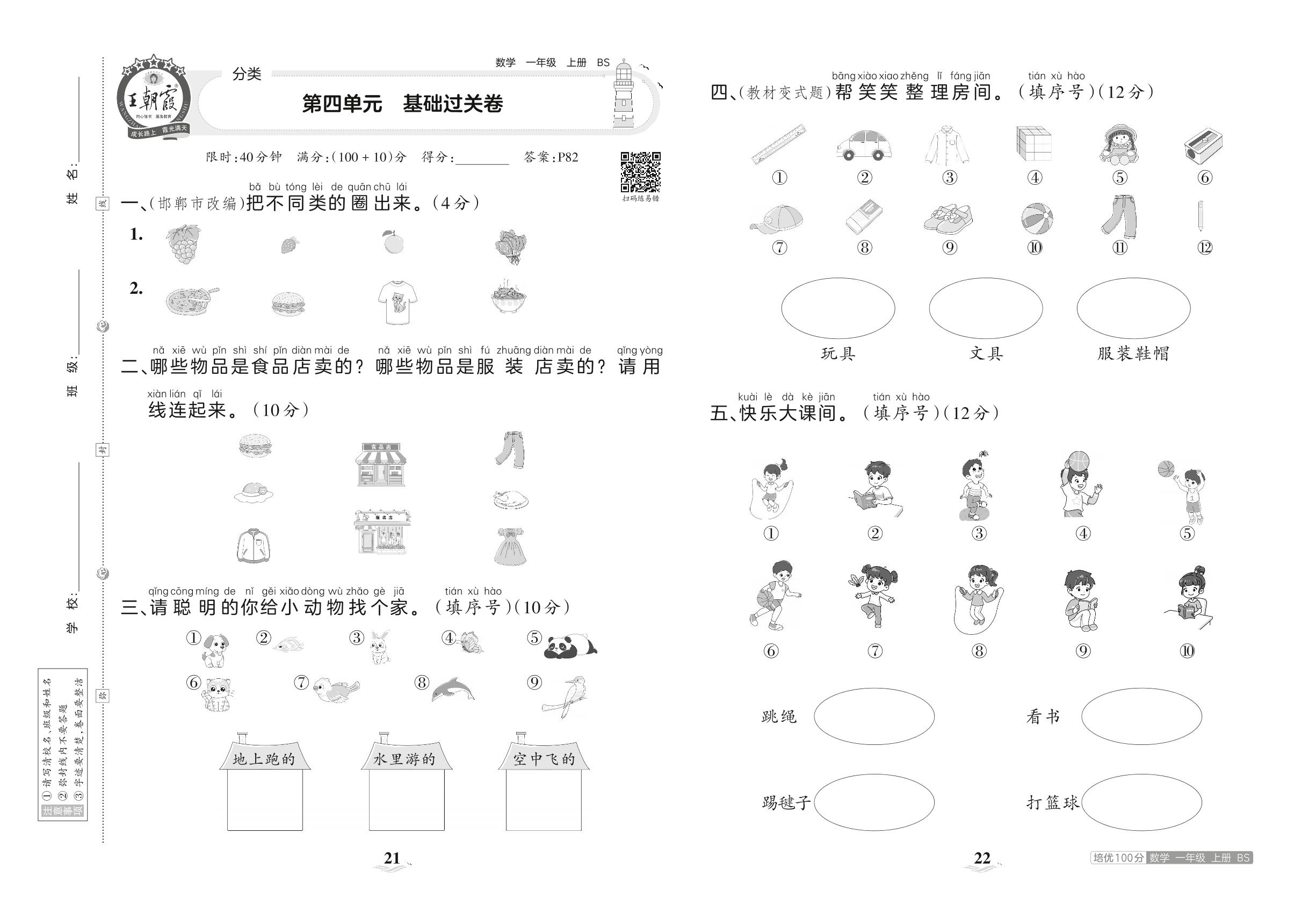 2023上册一年级数学北师版 第四单元 基础过关卷