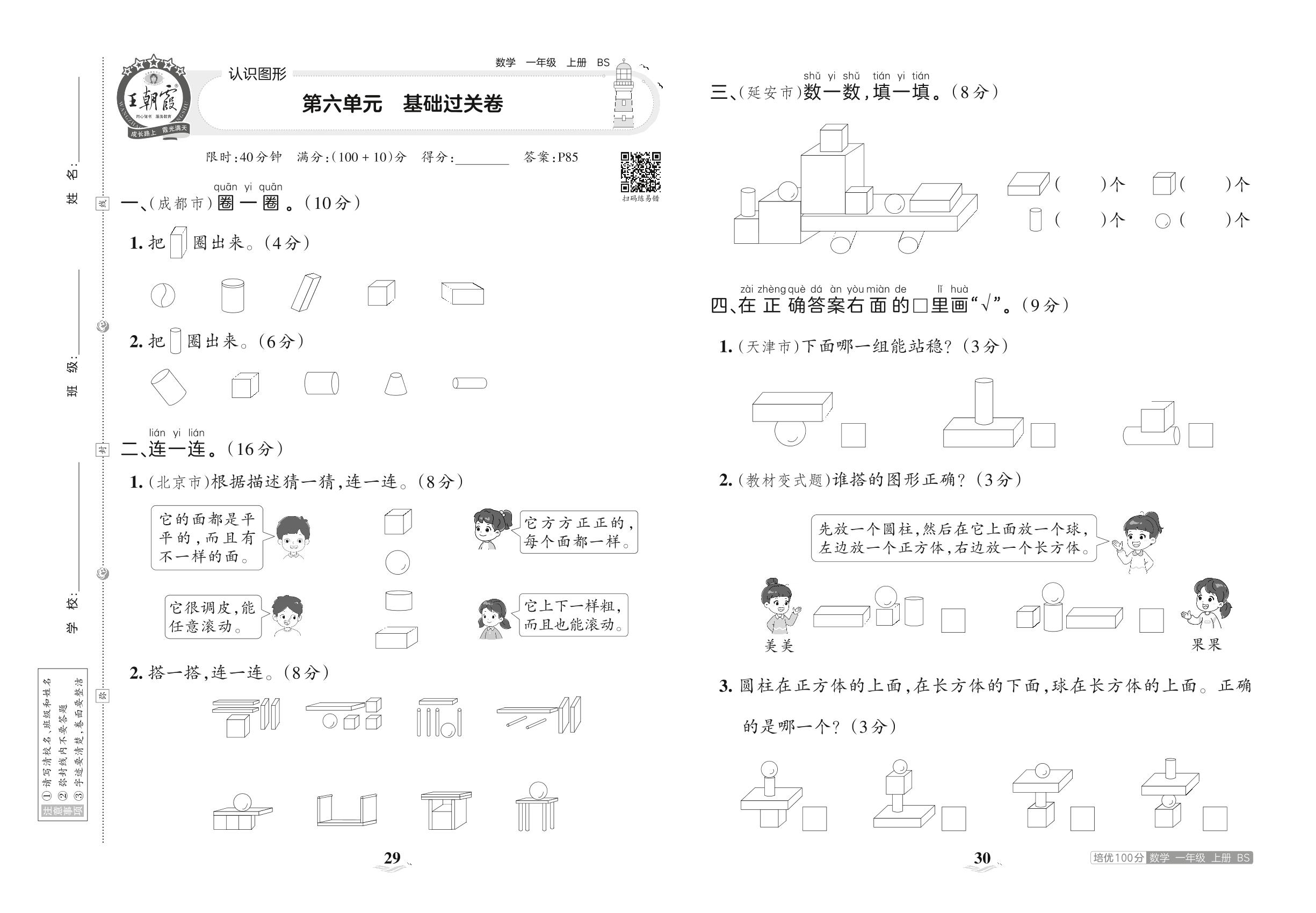 2023上册一年级数学北师版 第六单元 基础过关卷