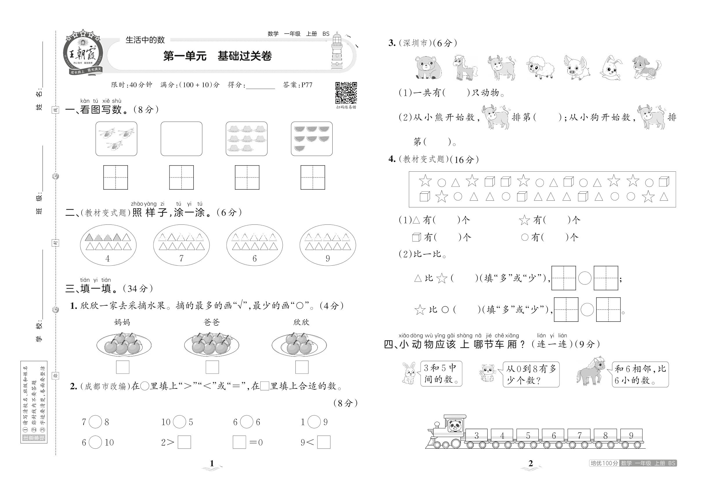 2023上册一年级数学北师版 第一单元 基础过关卷