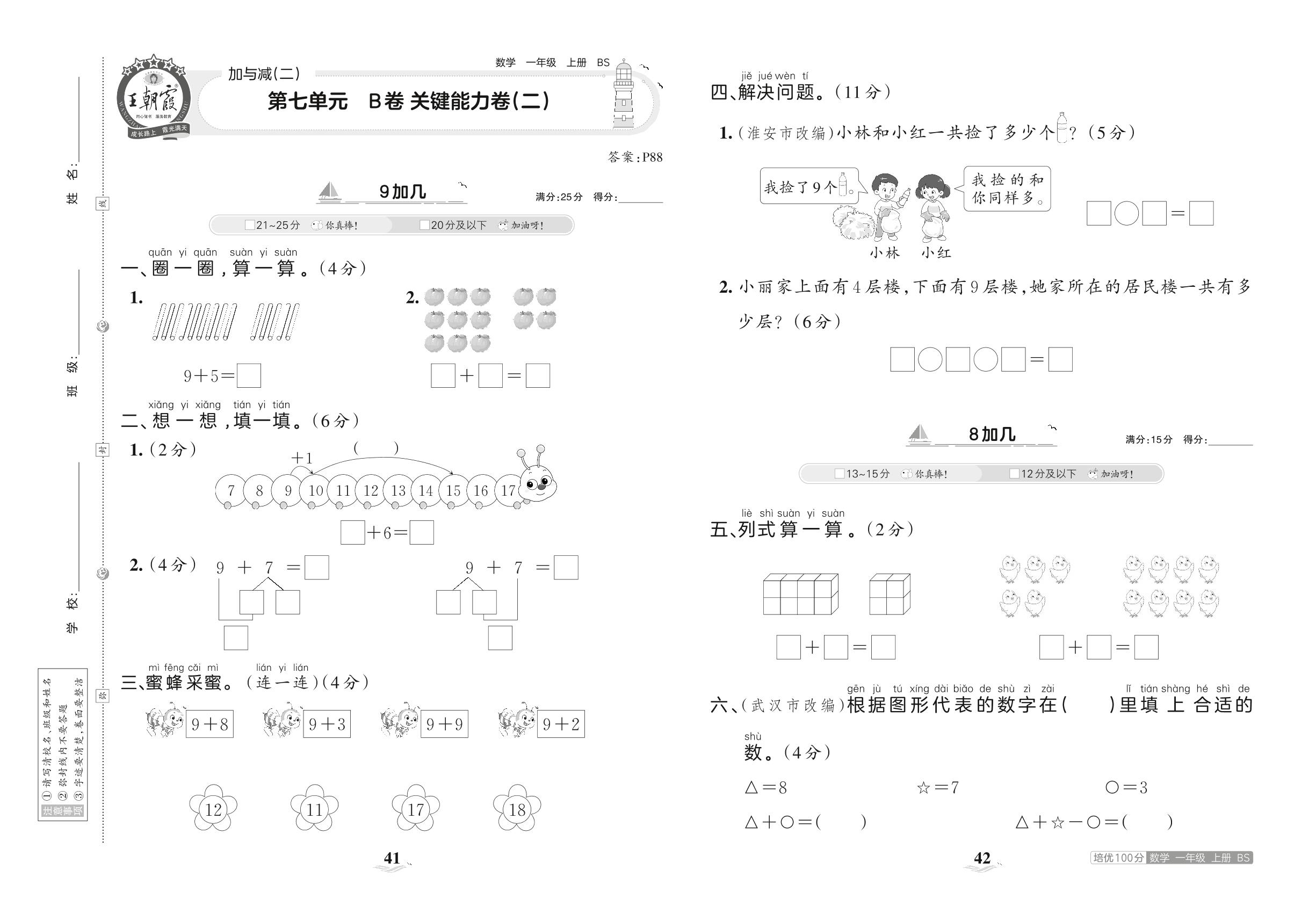 2023上册一年级数学北师版 第七单元 B卷 关键能力卷(二)