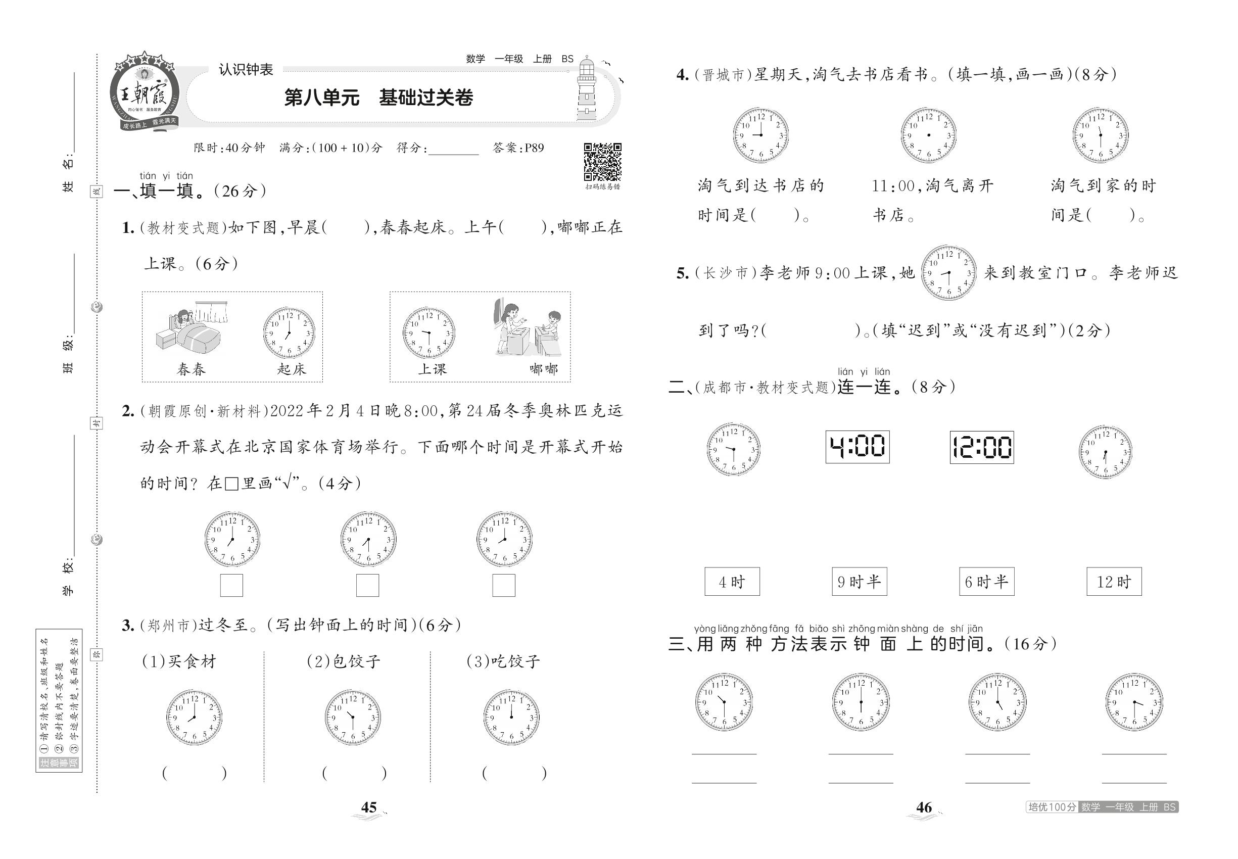 2023上册一年级数学北师版 第八单元 基础过关卷