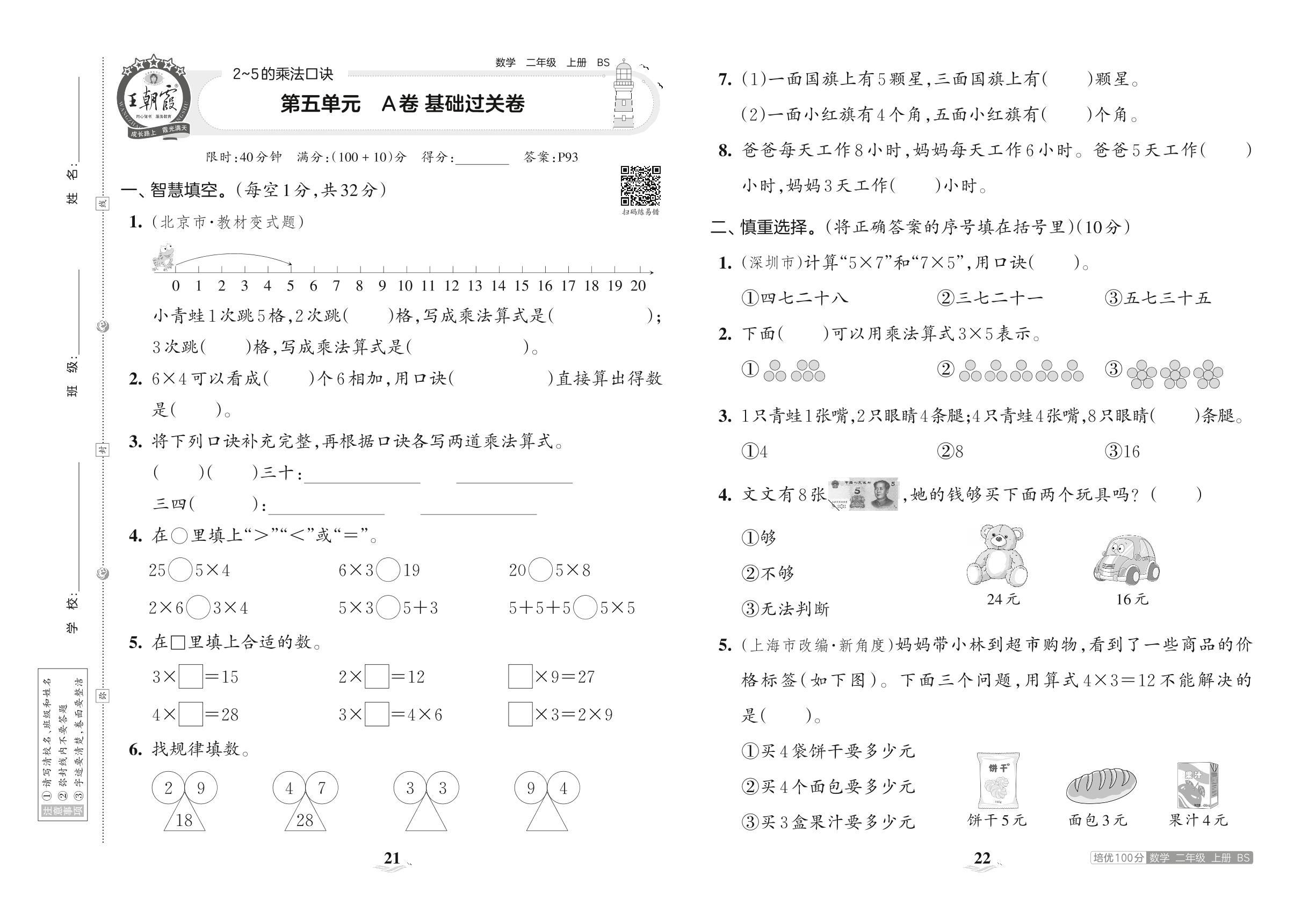 2023上册二年级数学北师版 第五单元 A卷 基础过关卷