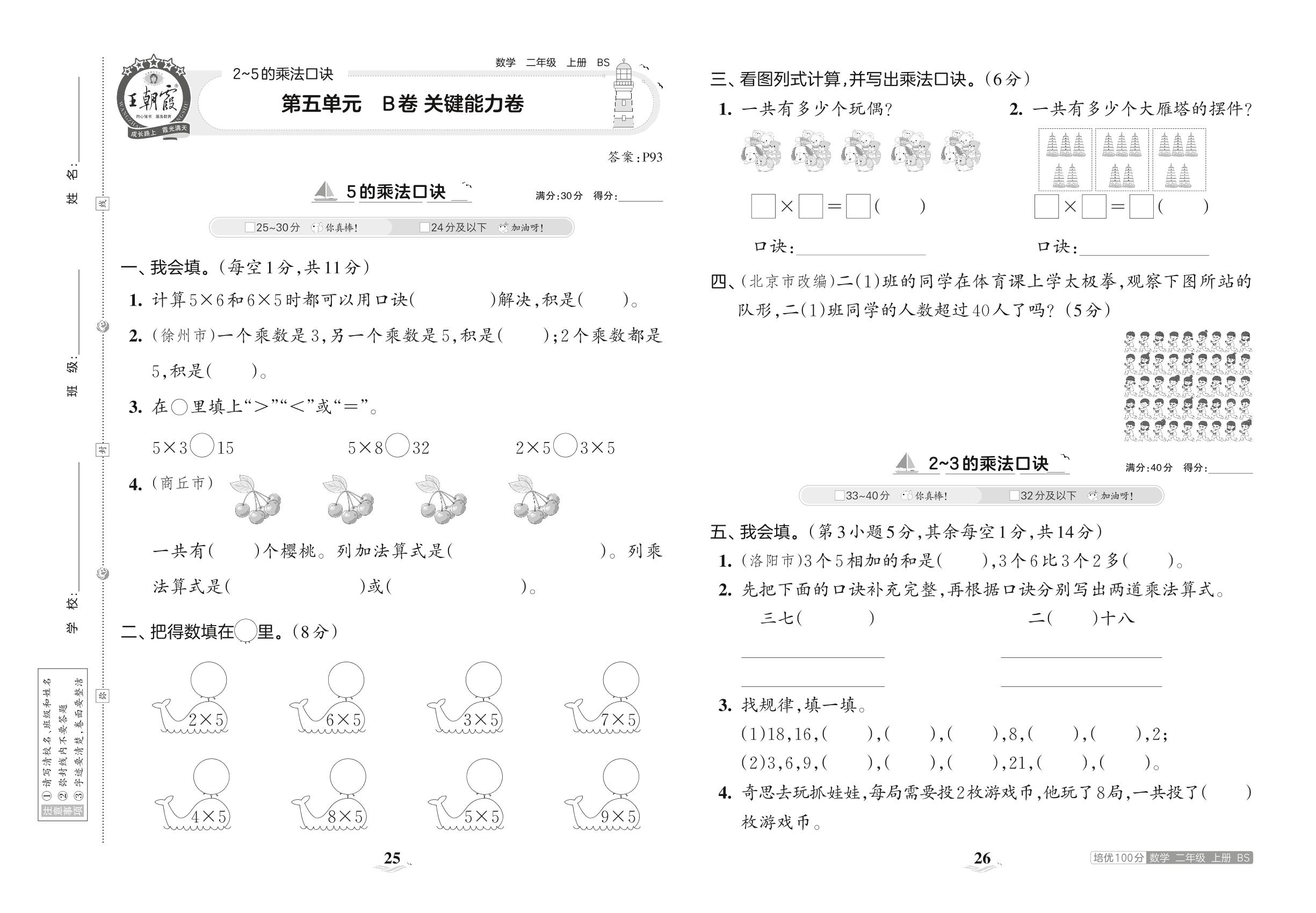 2023上册二年级数学北师版 第五单元 B卷 关键能力卷