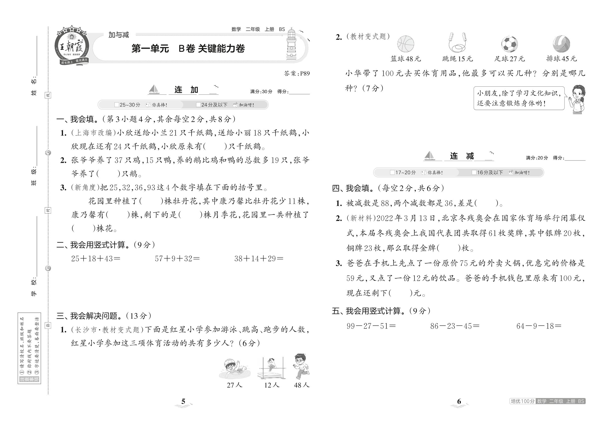 2023上册二年级数学北师版 第一单元 B卷 关键能力卷