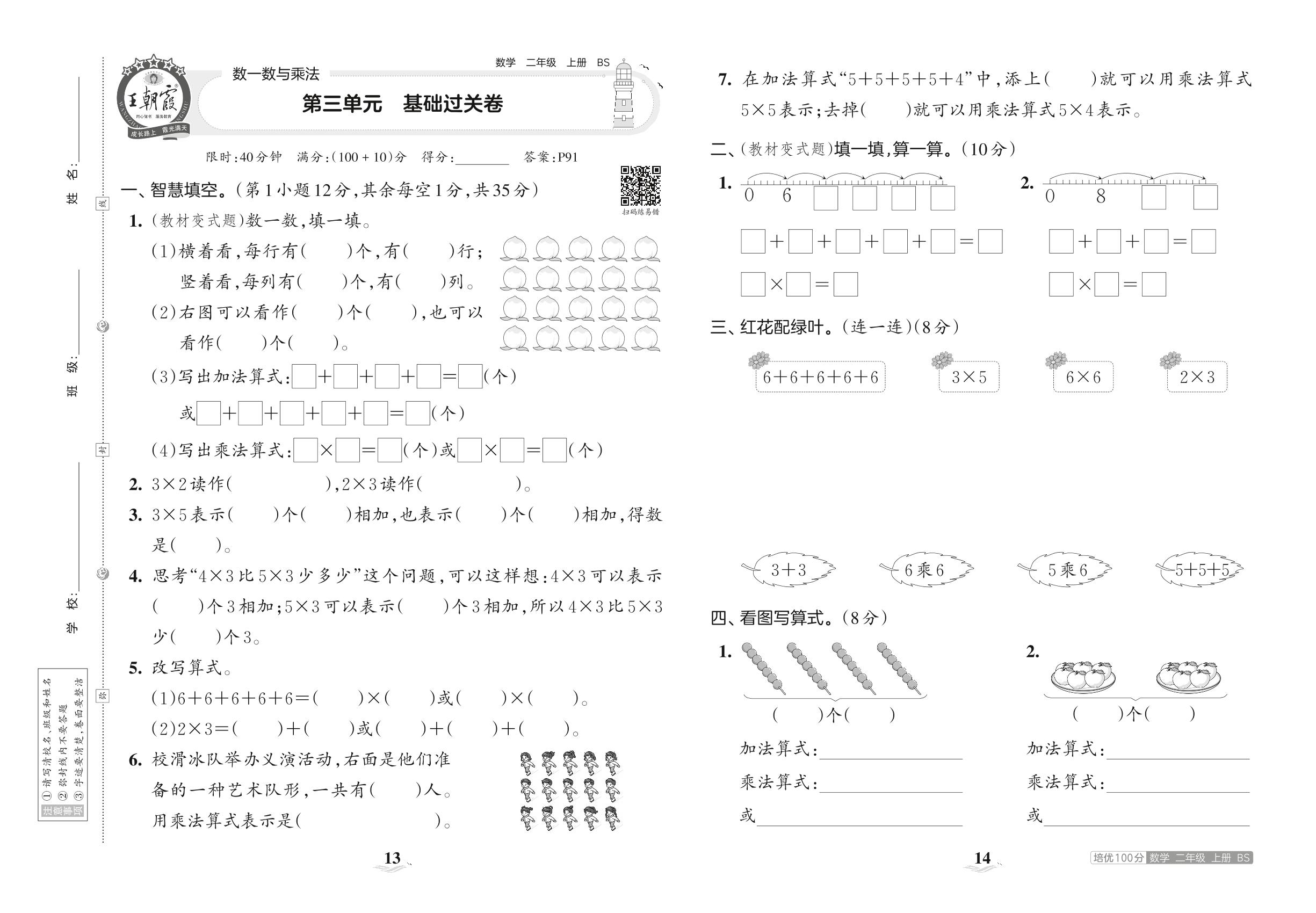 2023上册二年级数学北师版 第三单元 基础过关卷