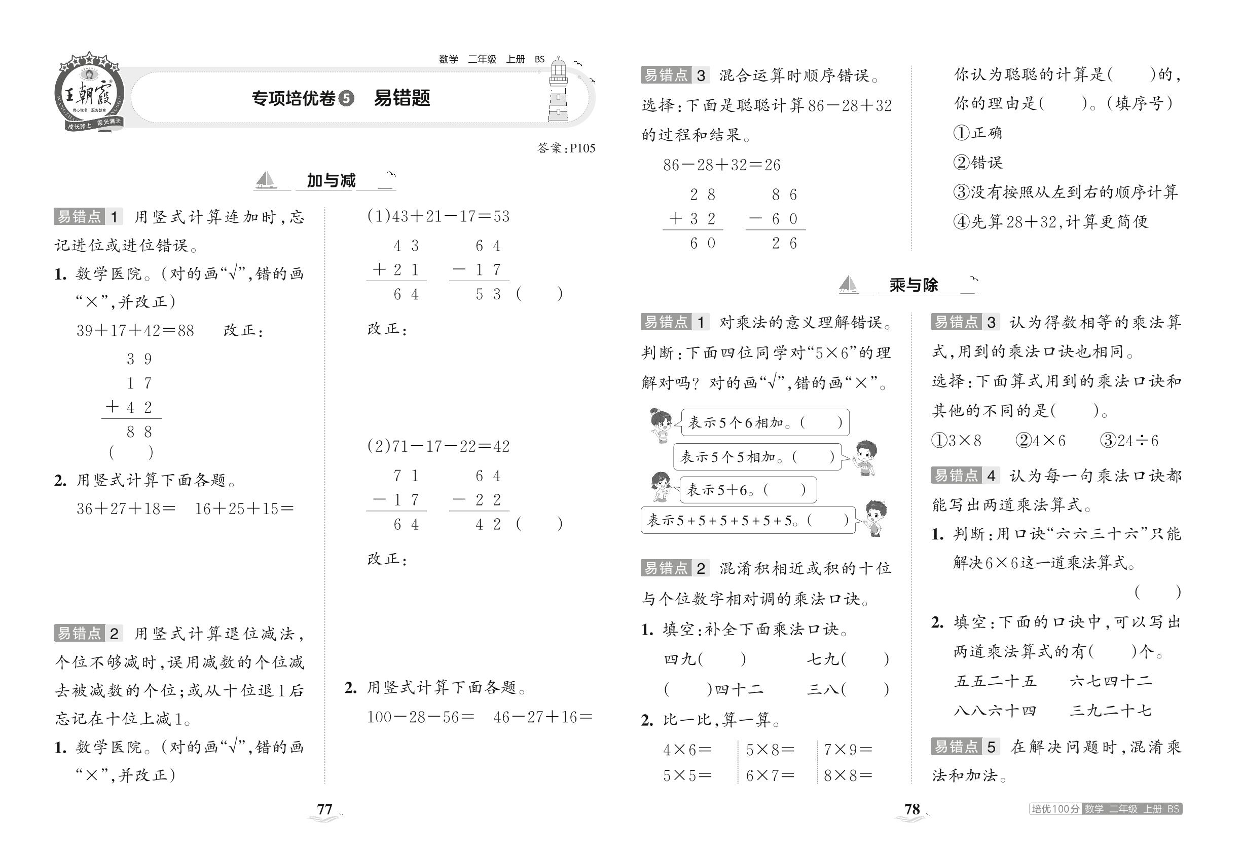 2023上册二年级数学北师版 专项培优卷5 易错题