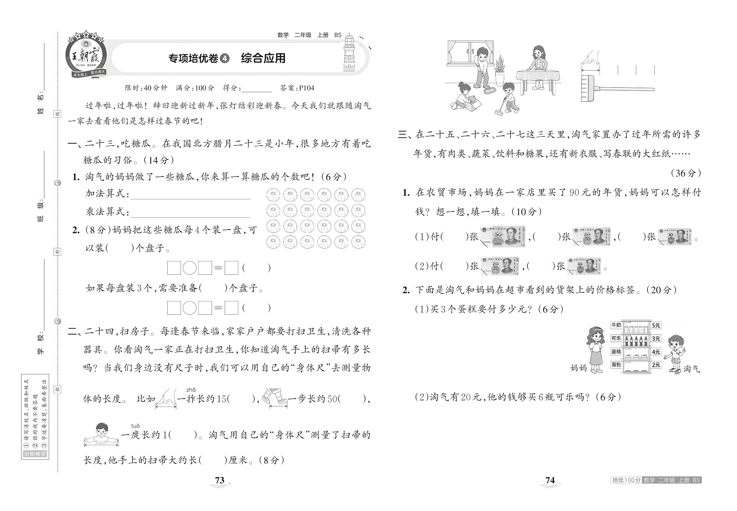 2023上册二年级数学北师版 专项培优卷4 综合应用