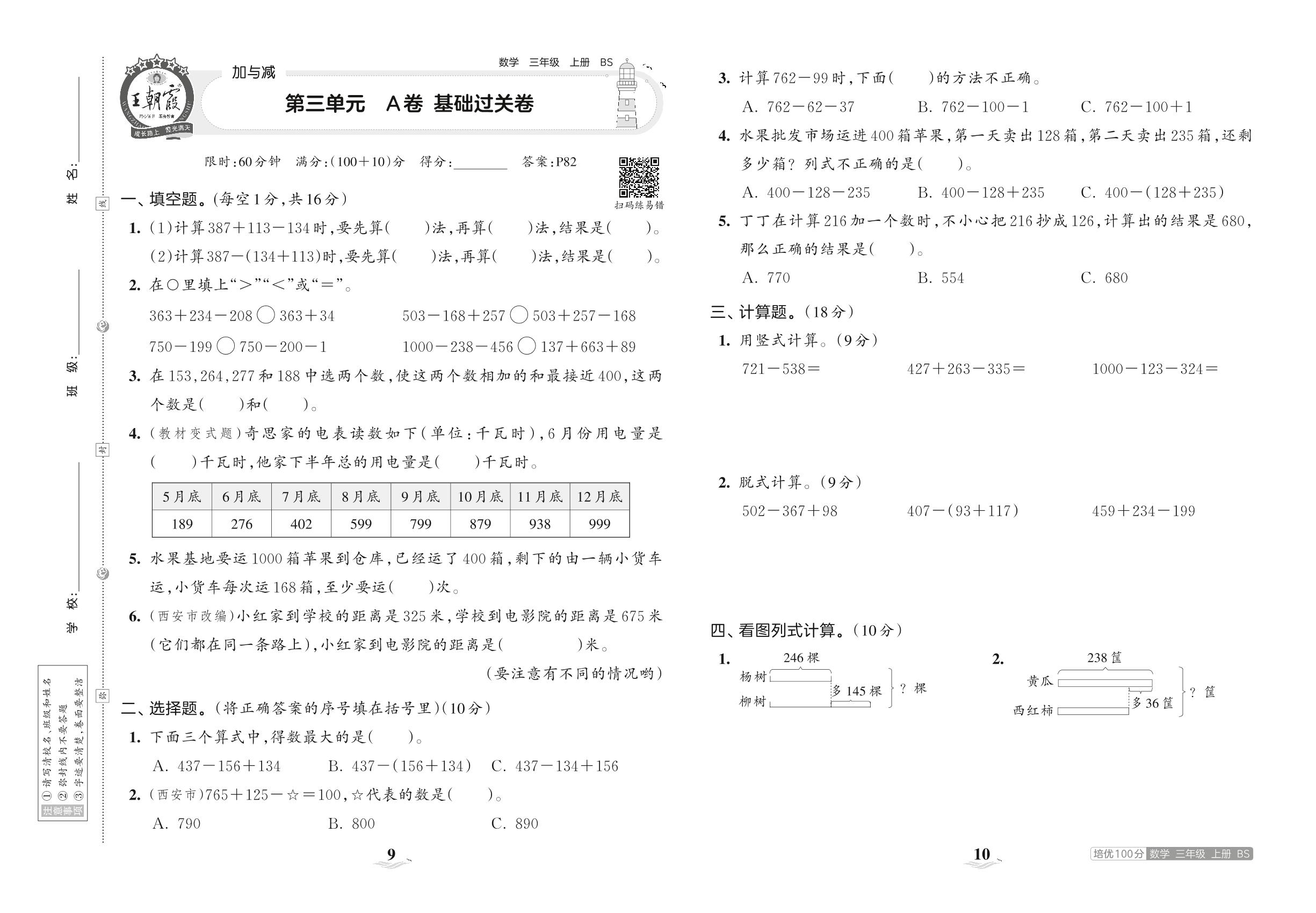 2023上册三年级数学北师版 第三单元 A卷 基础过关卷