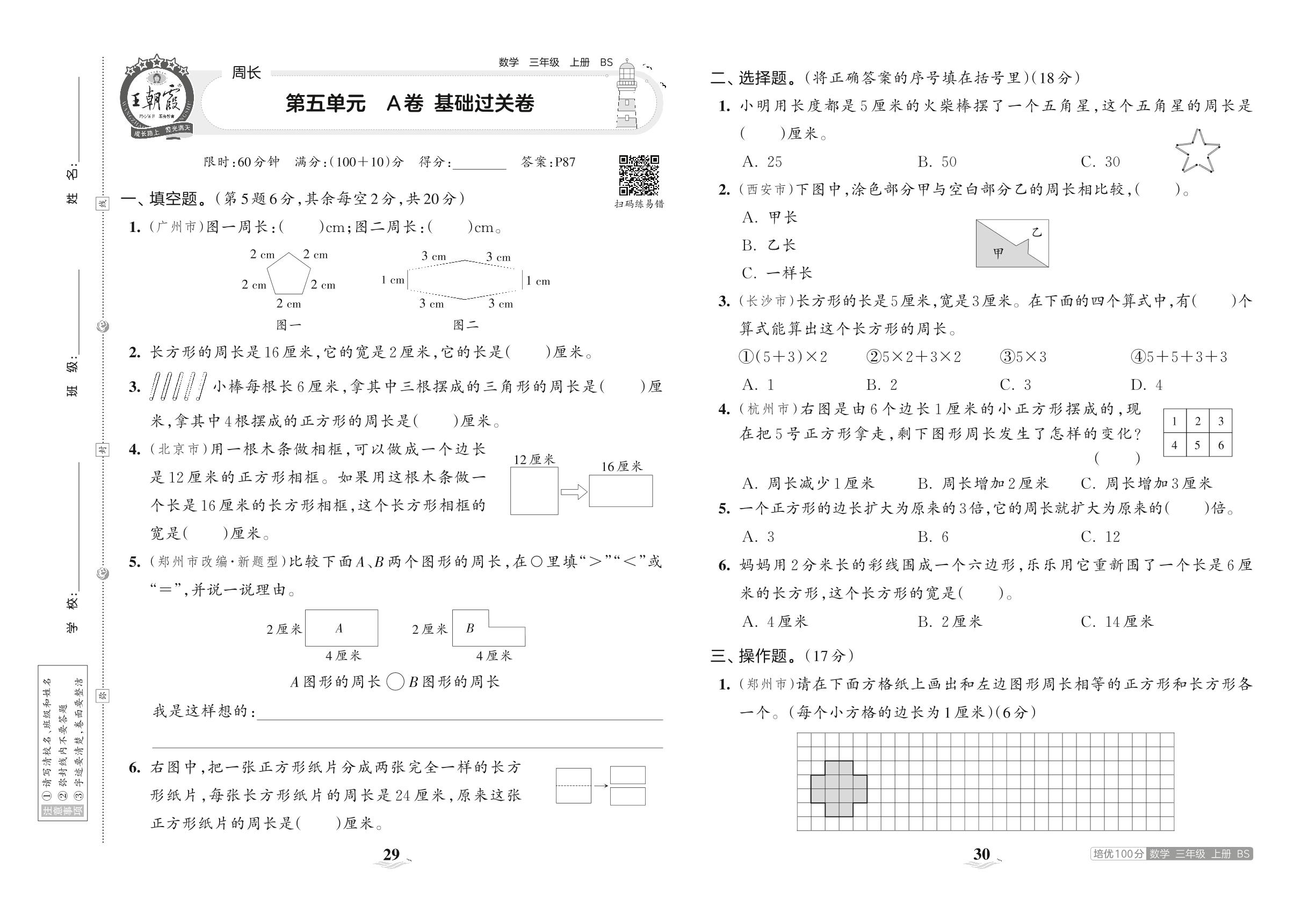 2023上册三年级数学北师版 第五单元 A卷 基础过关卷