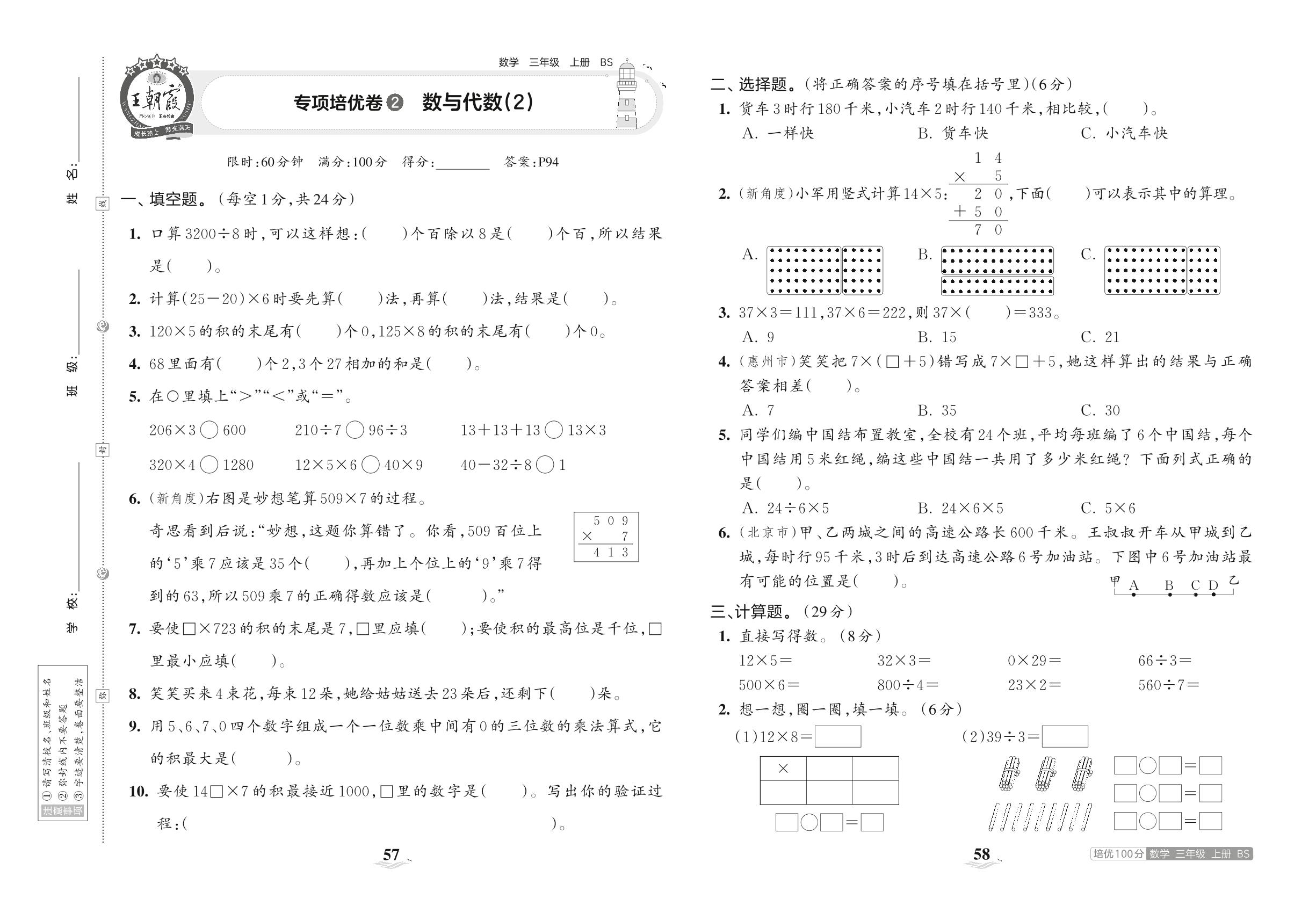 2023上册三年级数学北师版 专项培优卷2 数与代数(2)