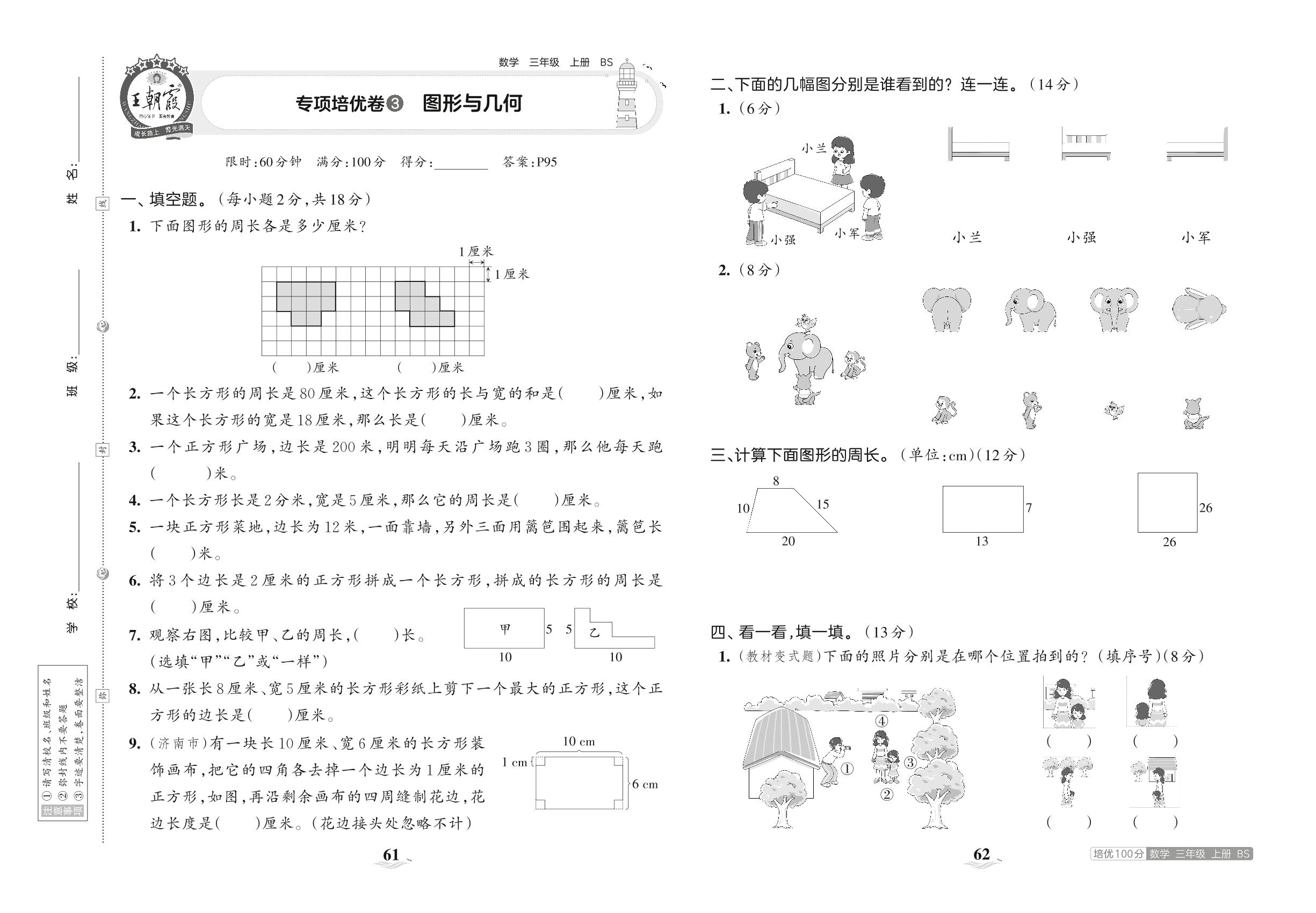 2023上册三年级数学北师版 专项培优卷3 图形与几何