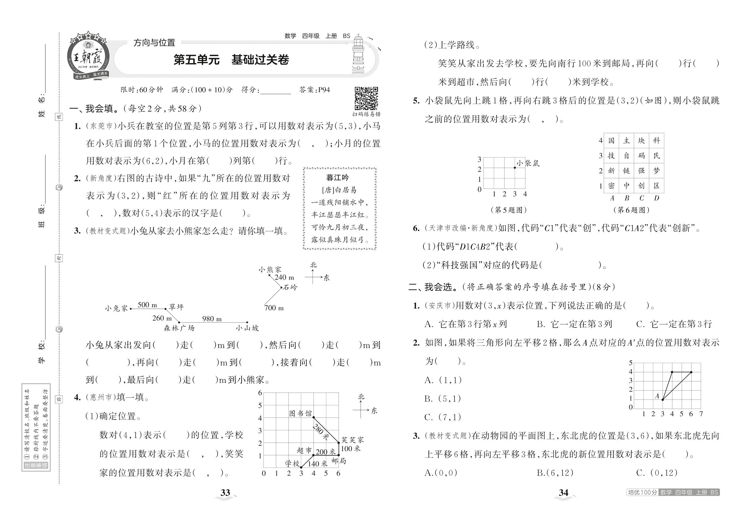 2023上册四年级数学北师版 第五单元 基础过关卷