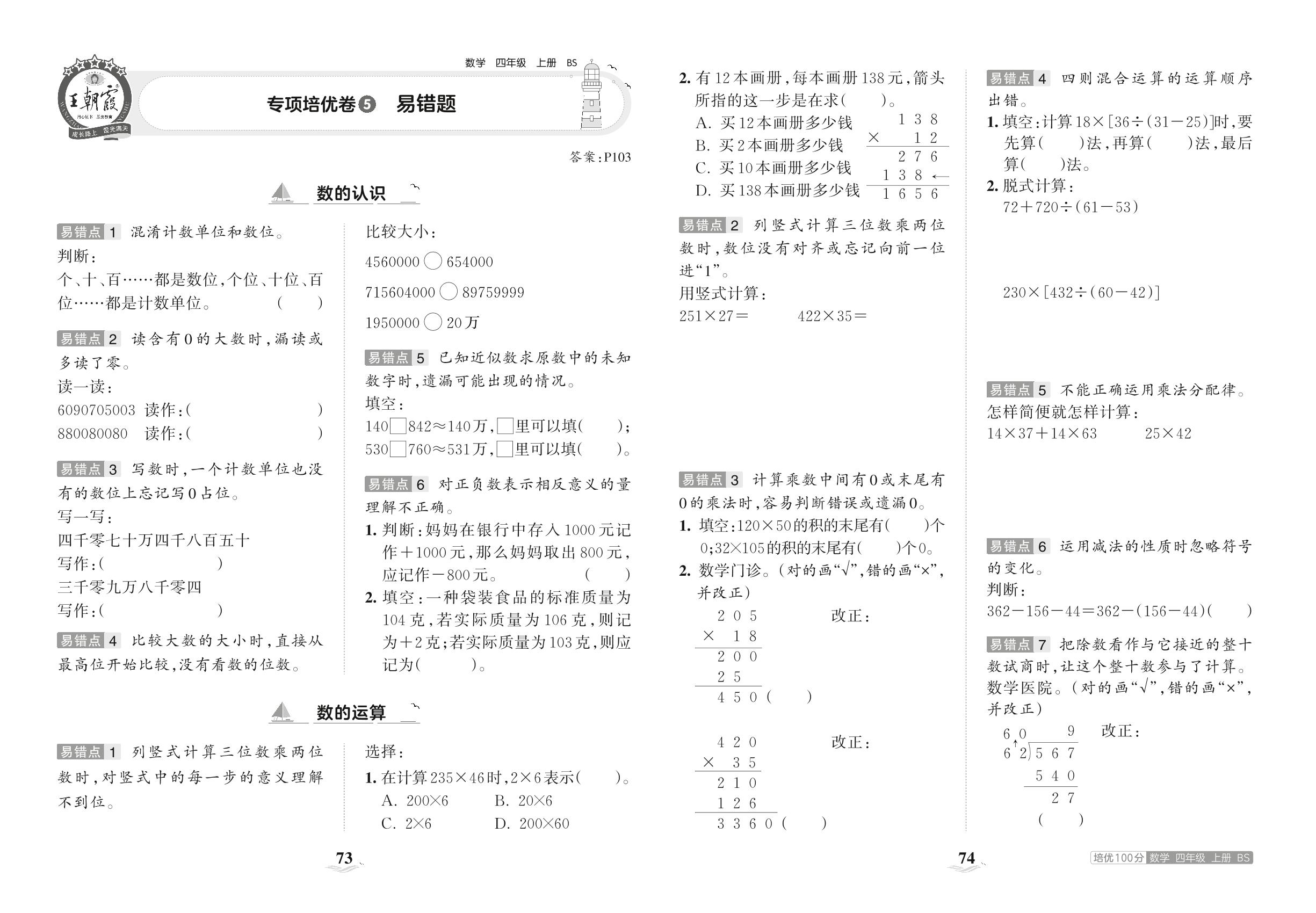 2023上册四年级数学北师版 专项培优卷5 易错题