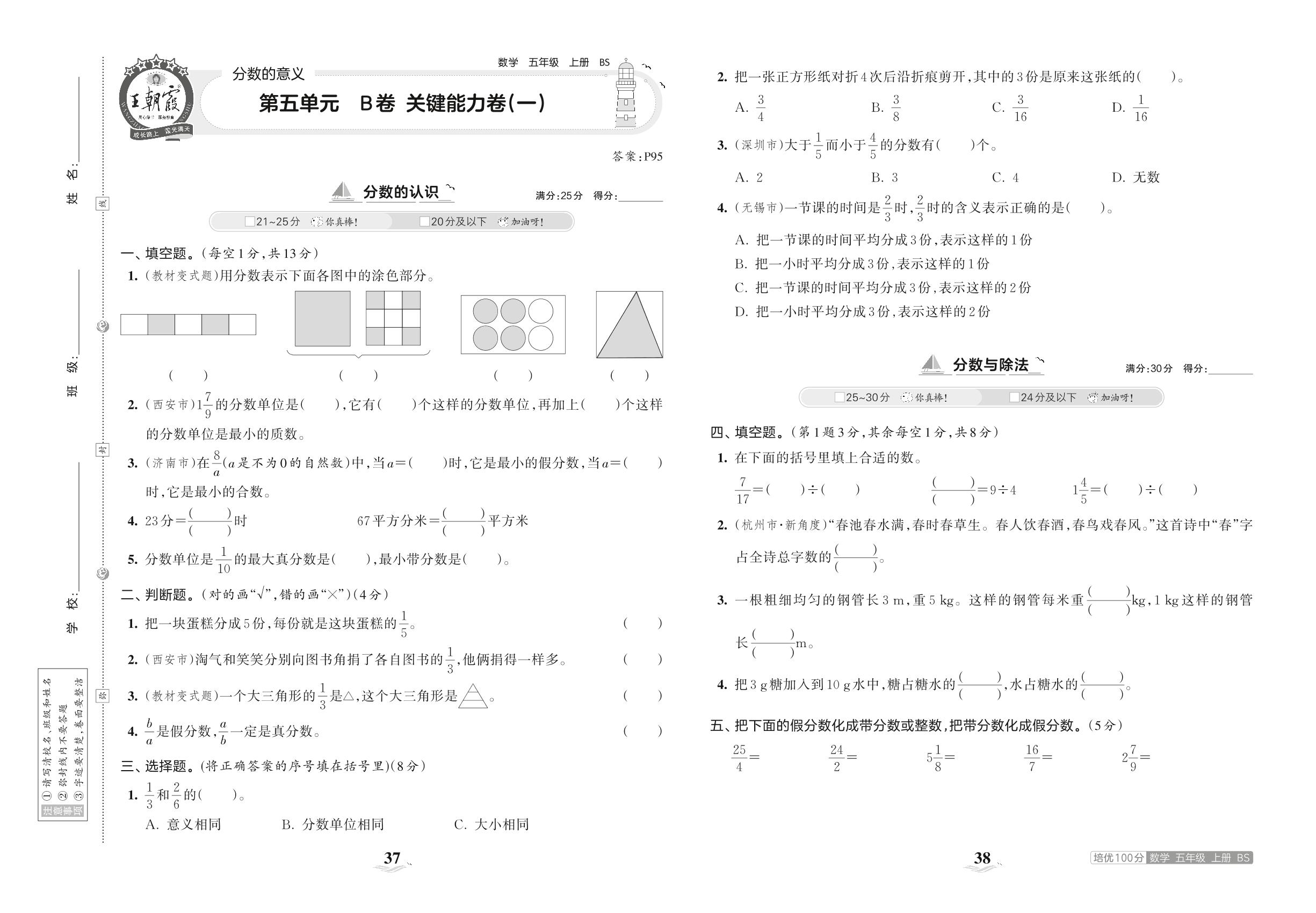 2023上册五年级数学北师版 第五单元 B卷 关键能力卷(一)