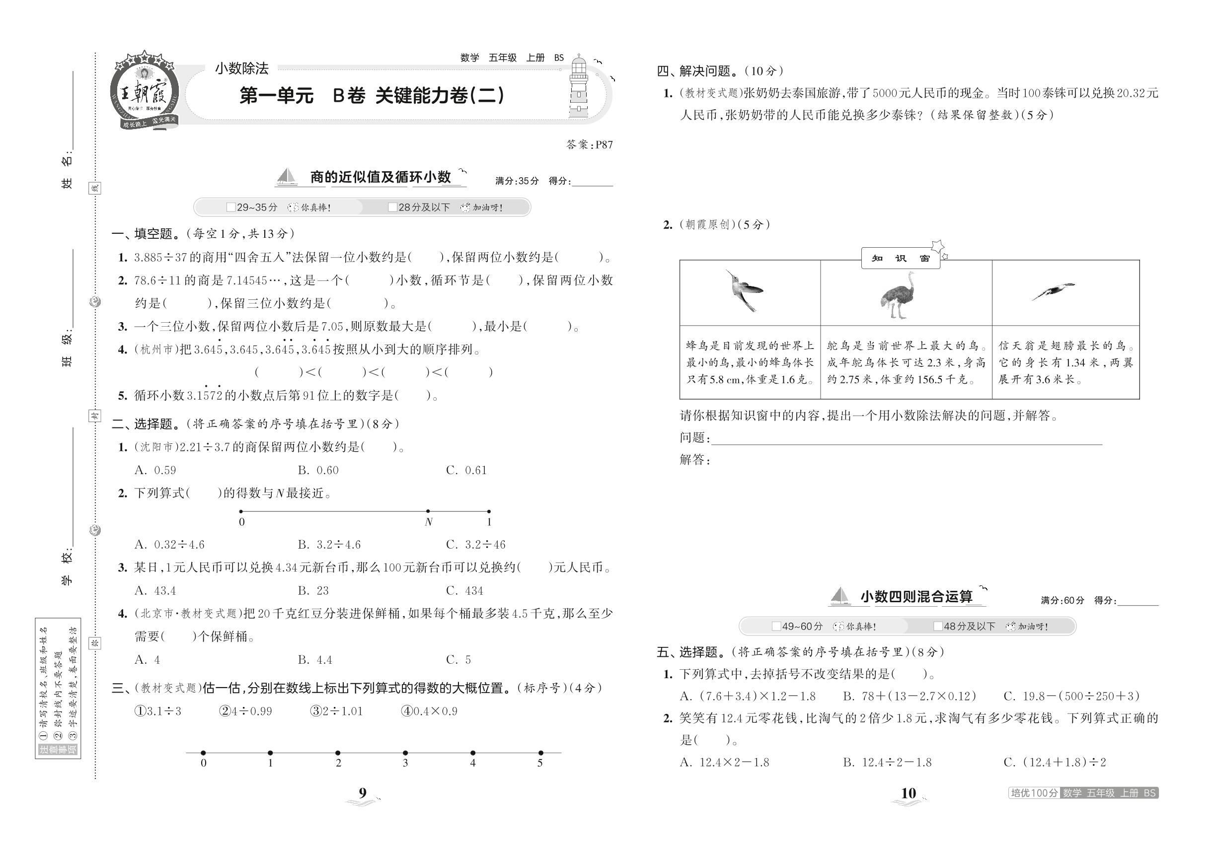 2023上册五年级数学北师版 第一单元 B卷 关键能力卷(二)