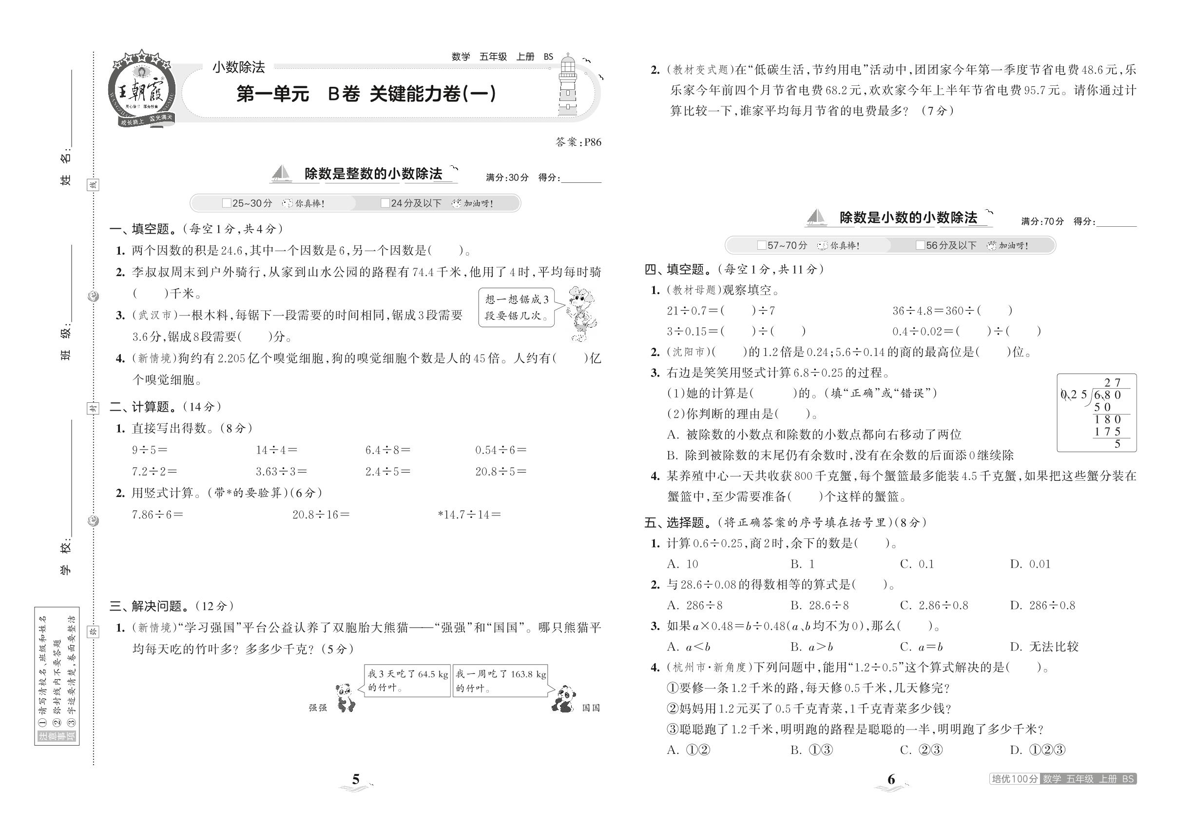 2023上册五年级数学北师版 第一单元 B卷 关键能力卷(一)