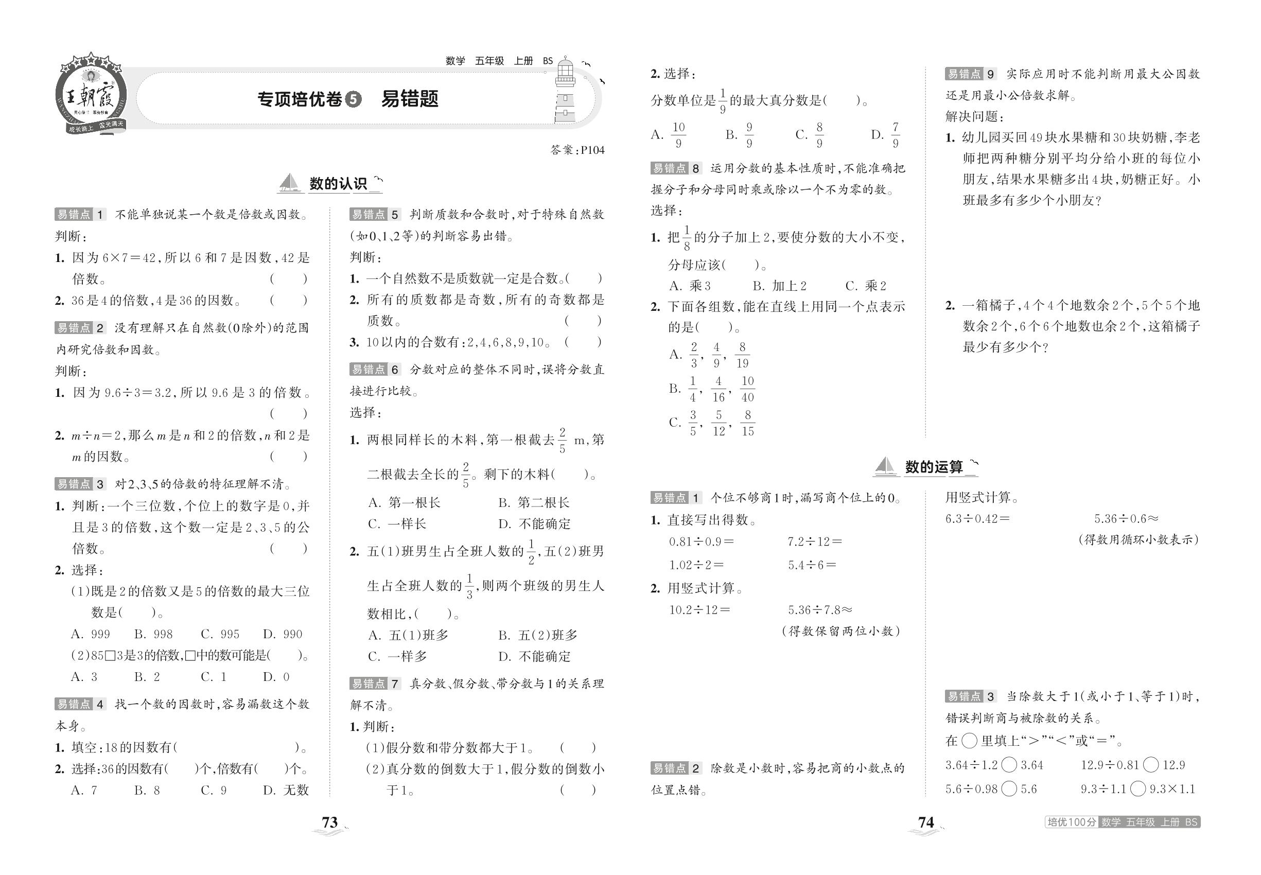 2023上册五年级数学北师版 专项培优卷5 易错题