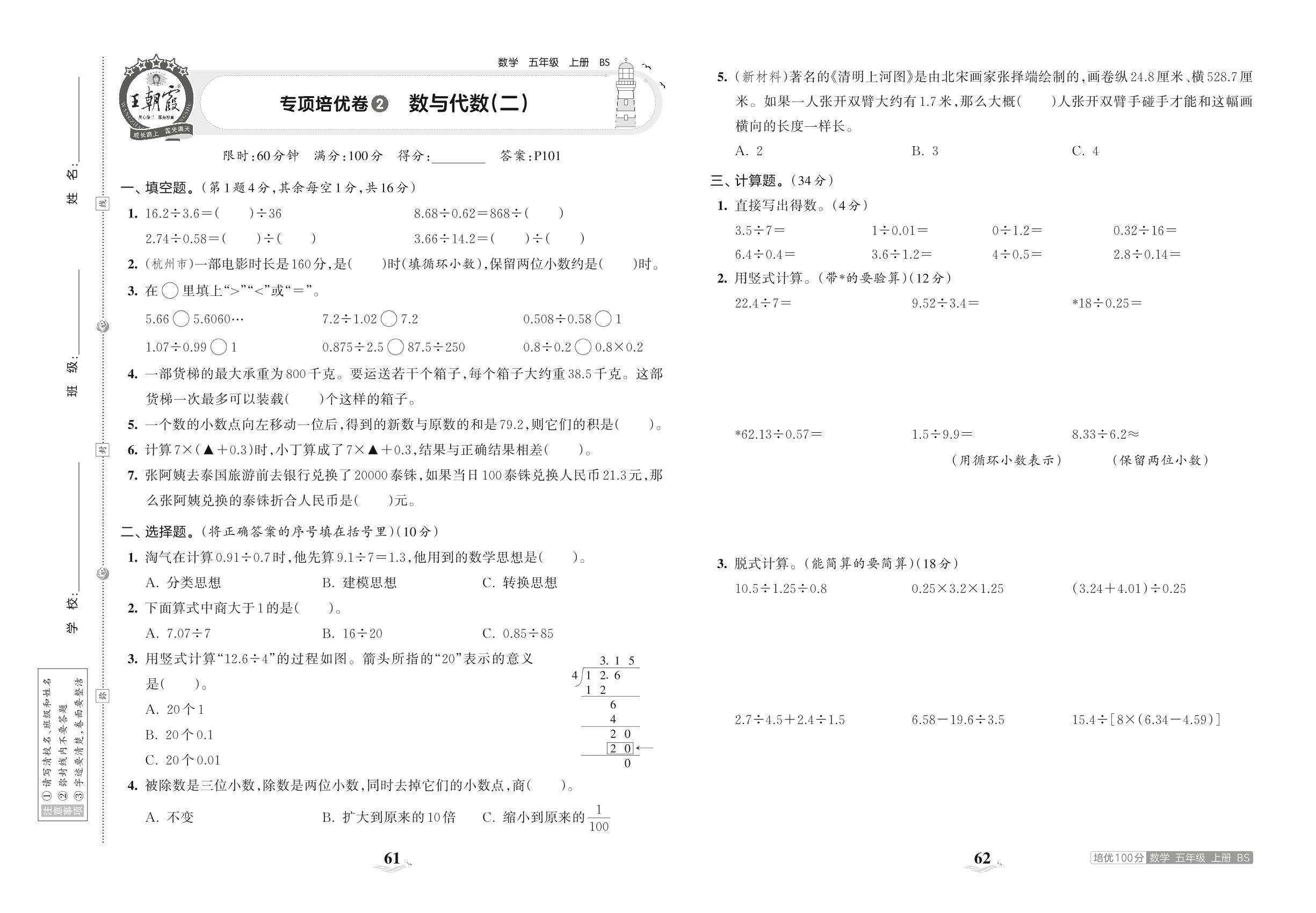五年级数学北师版上册专项卷