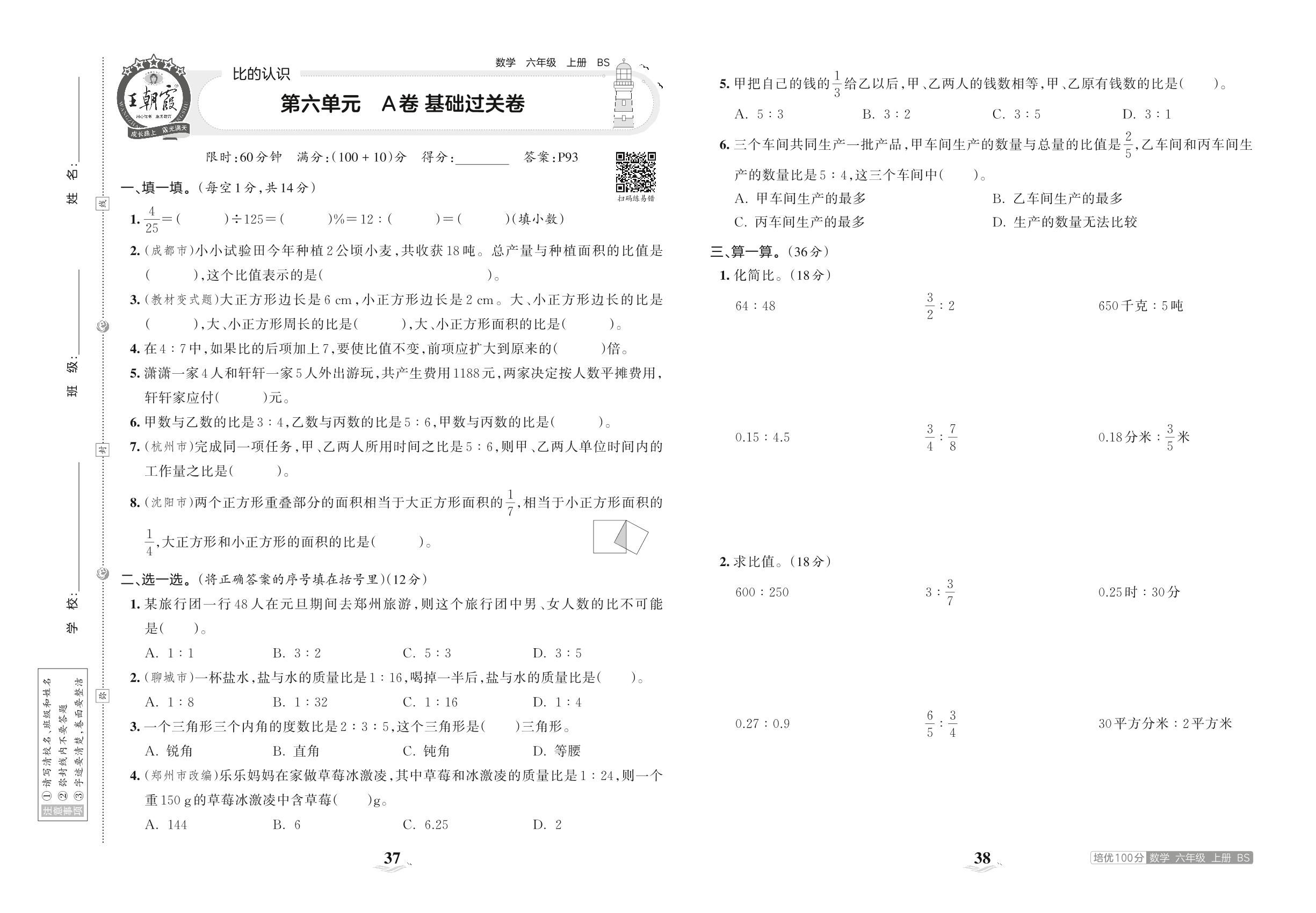 2023上册六年级数学北师版 第六单元 A卷 基础过关卷