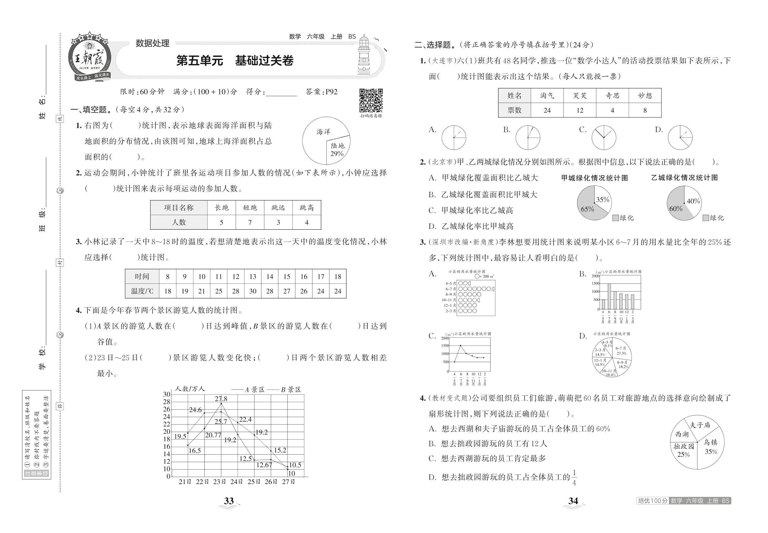 六年级数学北师版上册单元卷