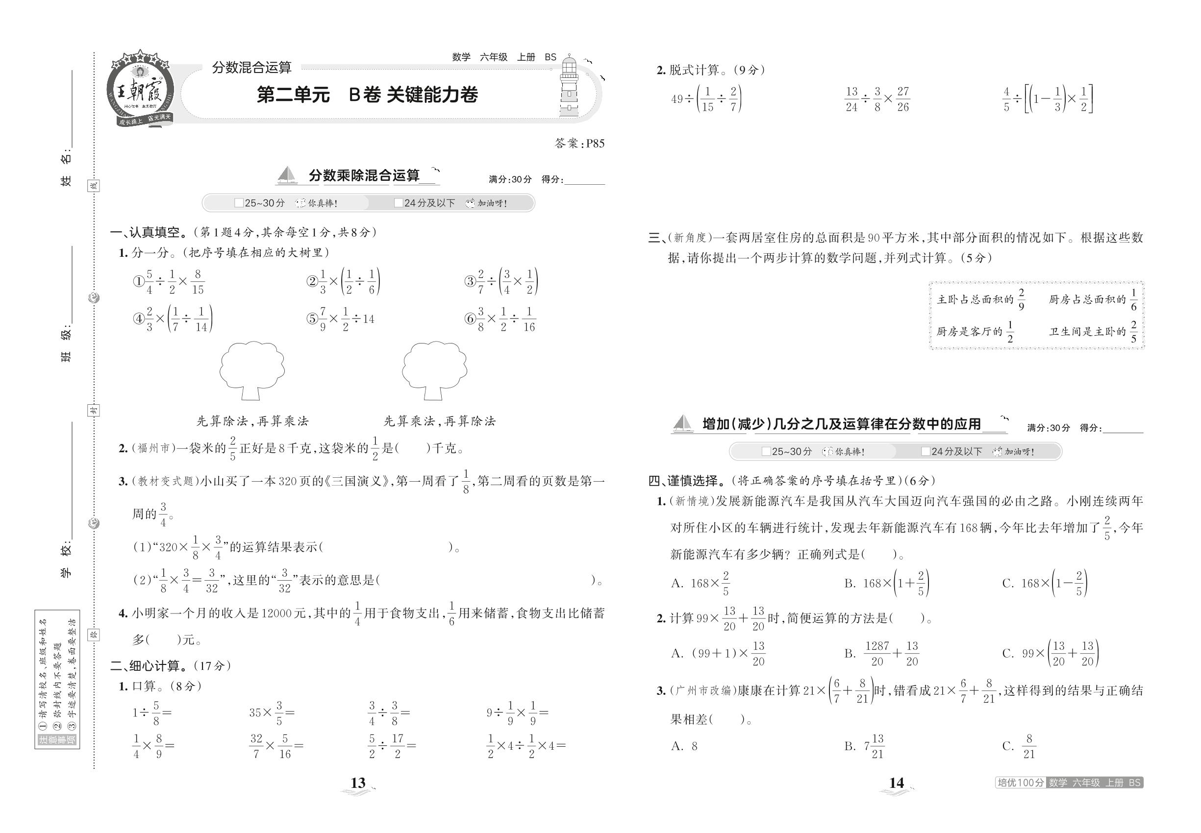 2023上册六年级数学北师版 第二单元 B卷 关键能力卷