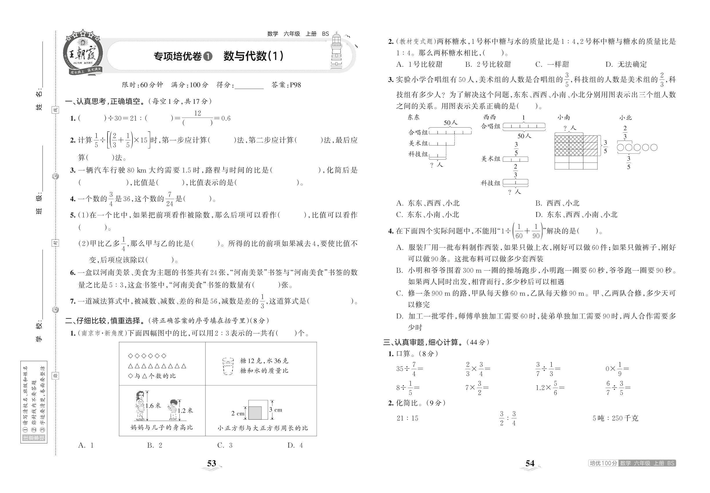 2023上册六年级数学北师版 专项培优卷1 数与代数(1)
