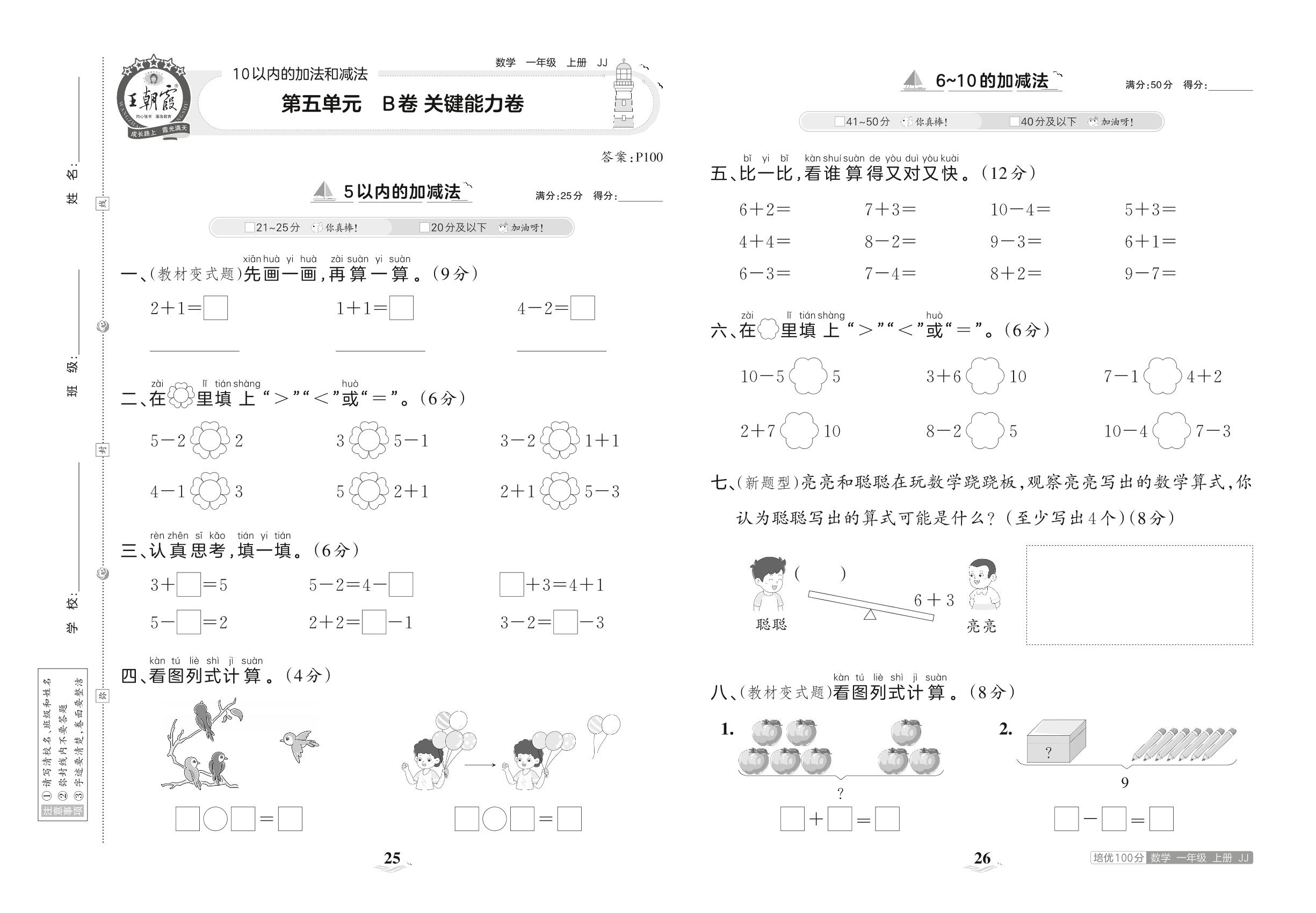 2023上册一年级数学冀教版 第五单元 B卷 关键能力卷