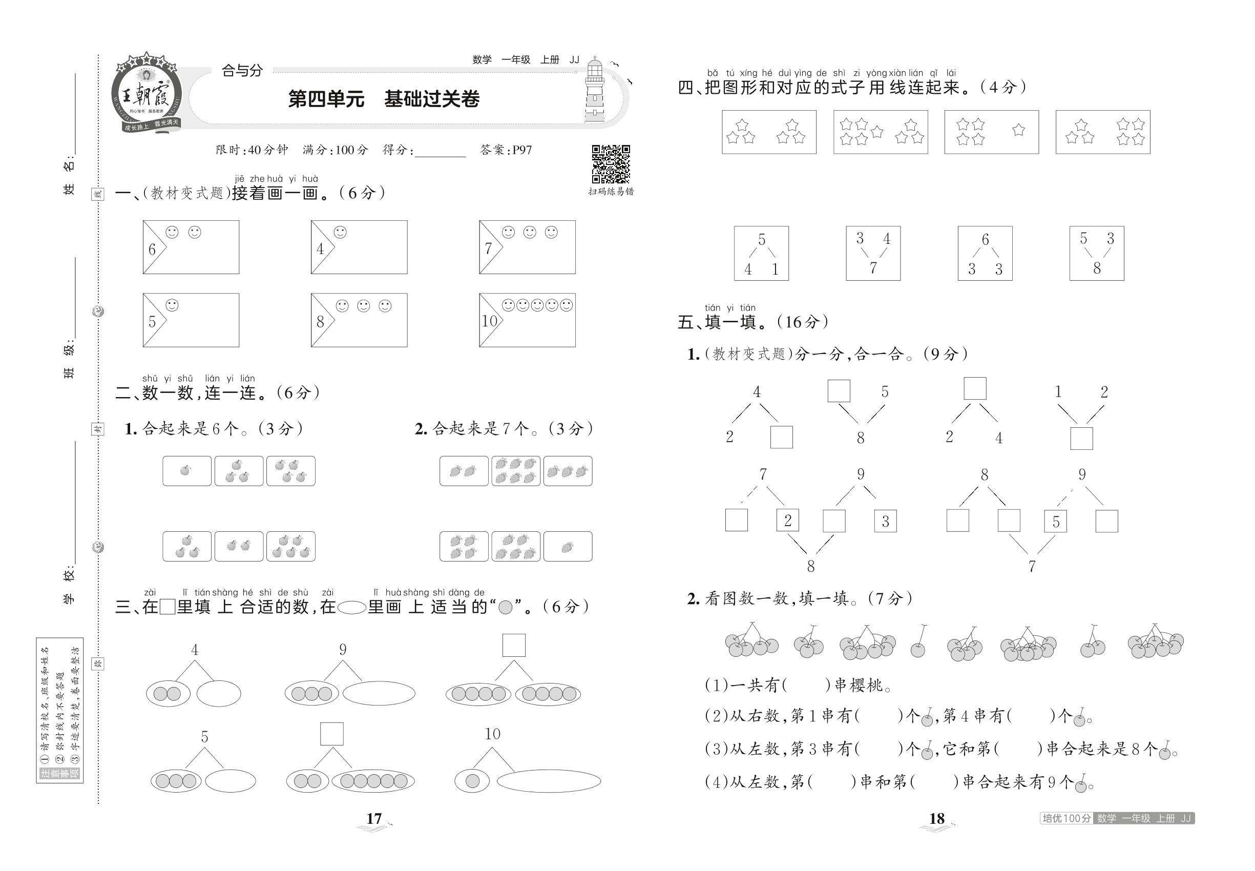 2023上册一年级数学冀教版 第四单元 基础过关卷