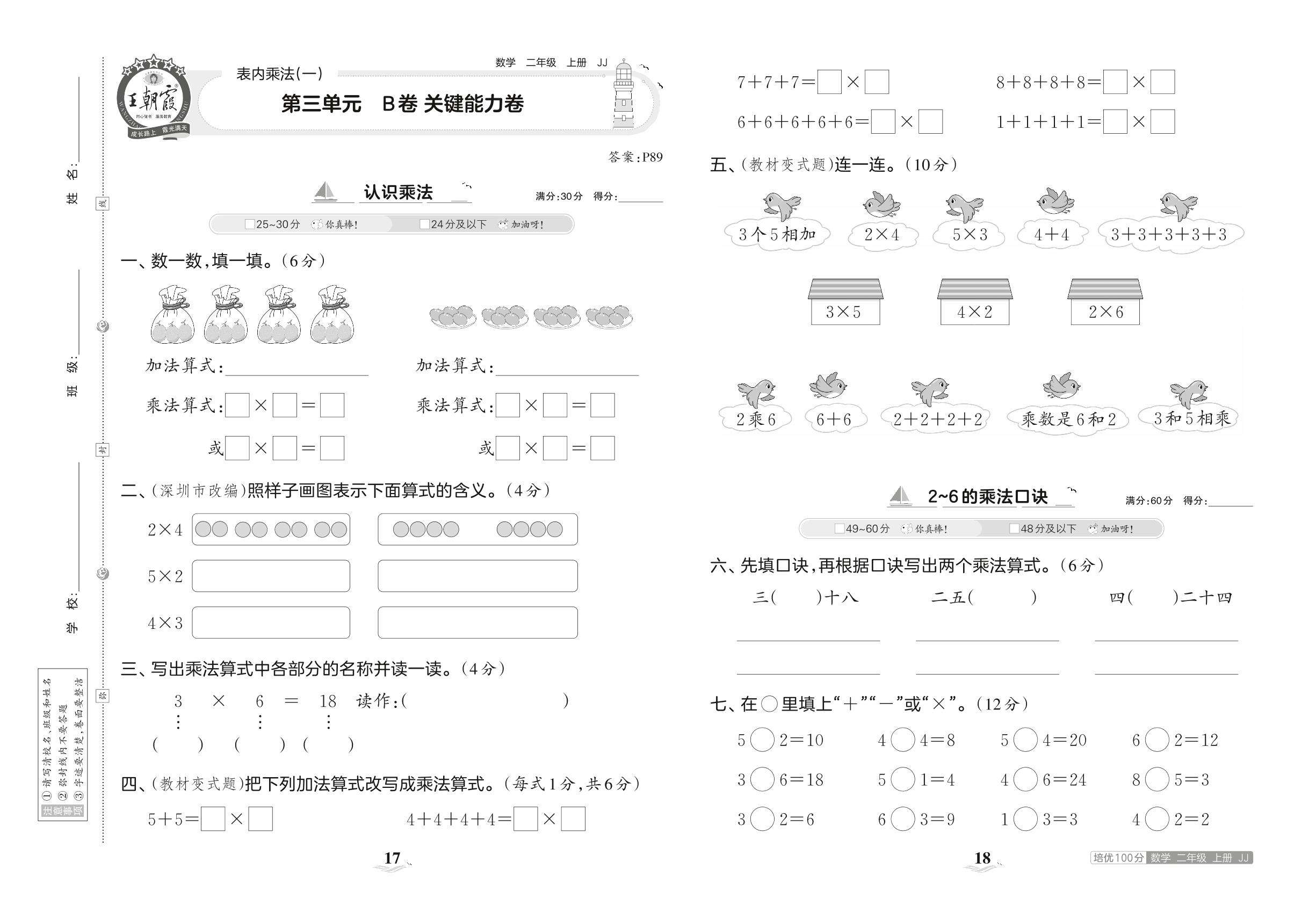 2023上册二年级数学冀教版 第三单元 B卷 关键能力卷
