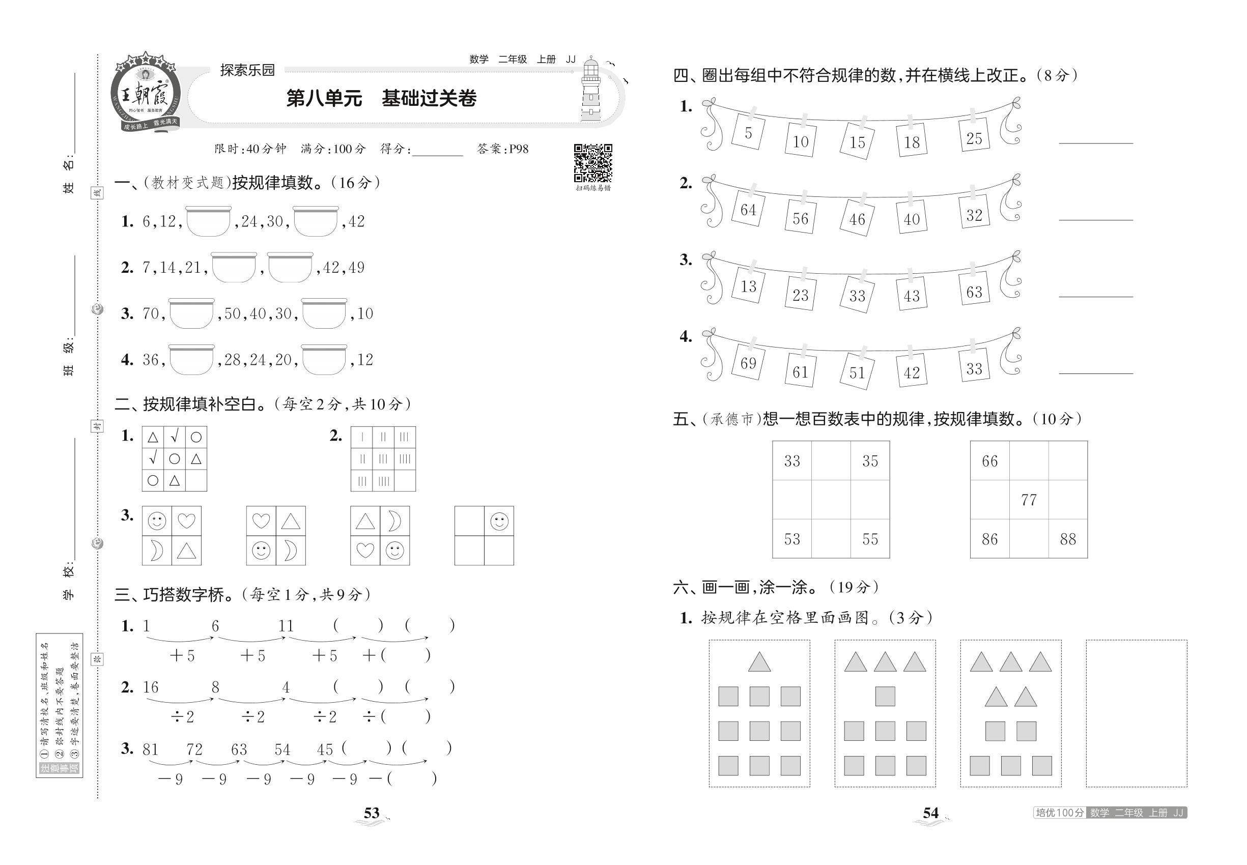 2023上册二年级数学冀教版 第八单元 基础过关卷