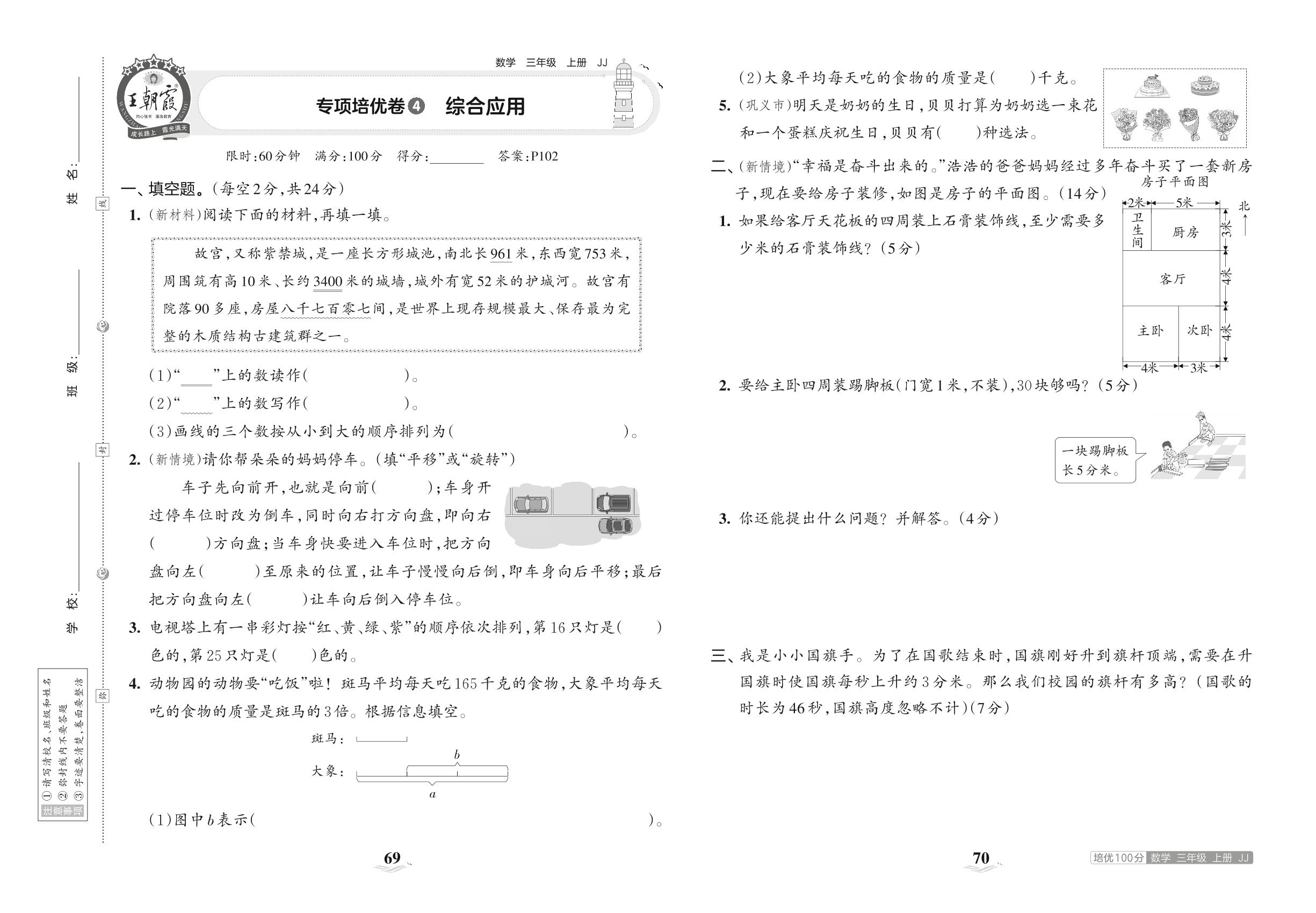 2023上册三年级数学冀教版 专项培优卷4 综合应用