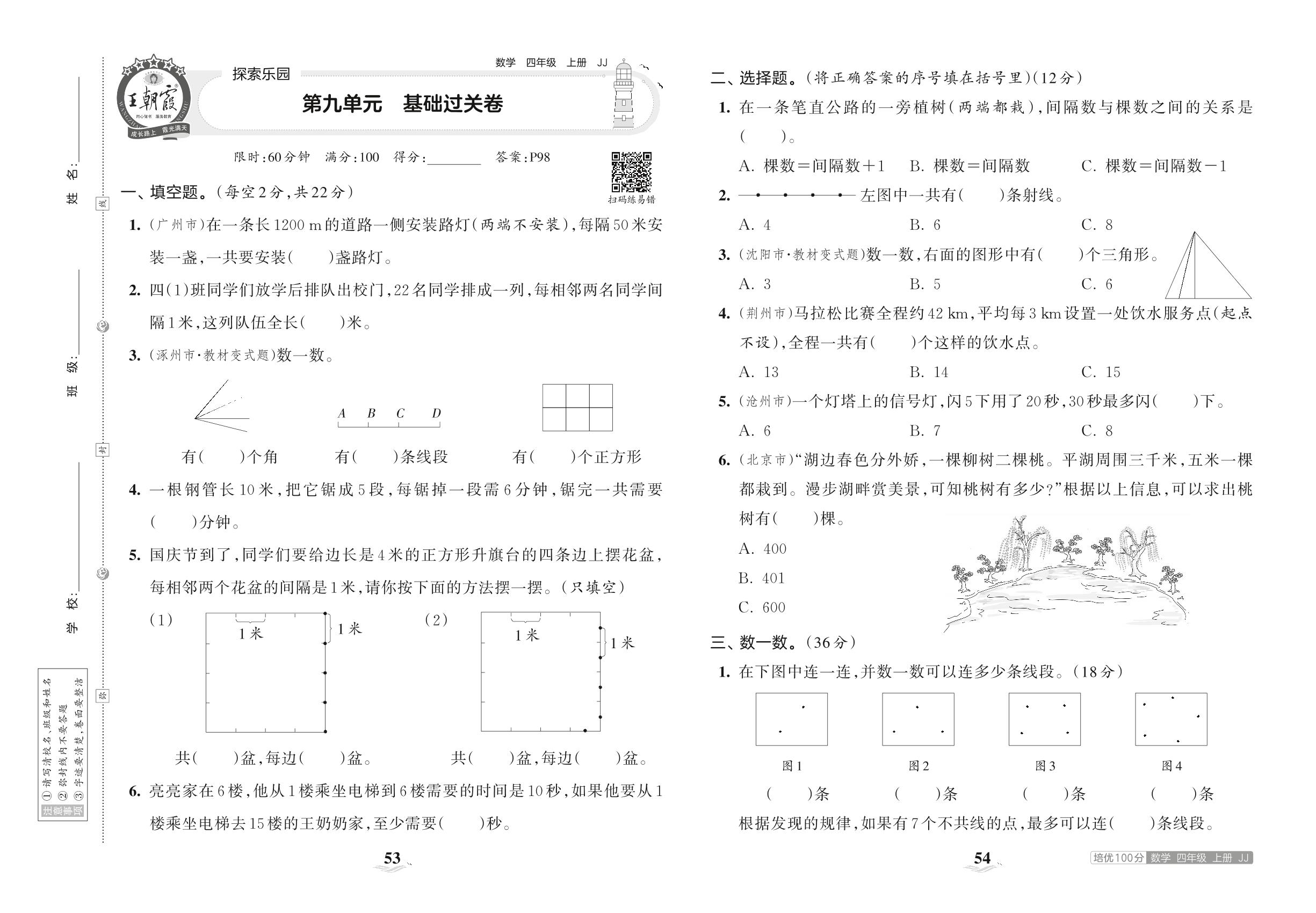 2023上册四年级数学冀教版 第九单元 基础过关卷